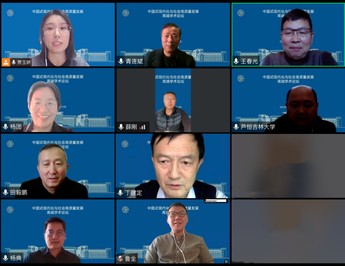 ,“人类文明新形态视域下社会现代化理论与实践”创新团队主办,中国社会学会社会治理专业委员会协办的“中国式现代化与社会高质量发展”学术研讨会依托腾讯会议平台在线上如期举行。中国社会科学院大学、中国社会科学院社会学研究所杨团教授,中共中央党校(国家行政学院)青连斌教授,华中科技大学丁建定教授,中国社会科学院社会学研究所王春光教授,中国社会科学院社会学研究所杨典教授,中国人民大学鲁全教授、中国社会科学杂志社薛刚副编审,以及重庆时时彩-重庆时时彩平台