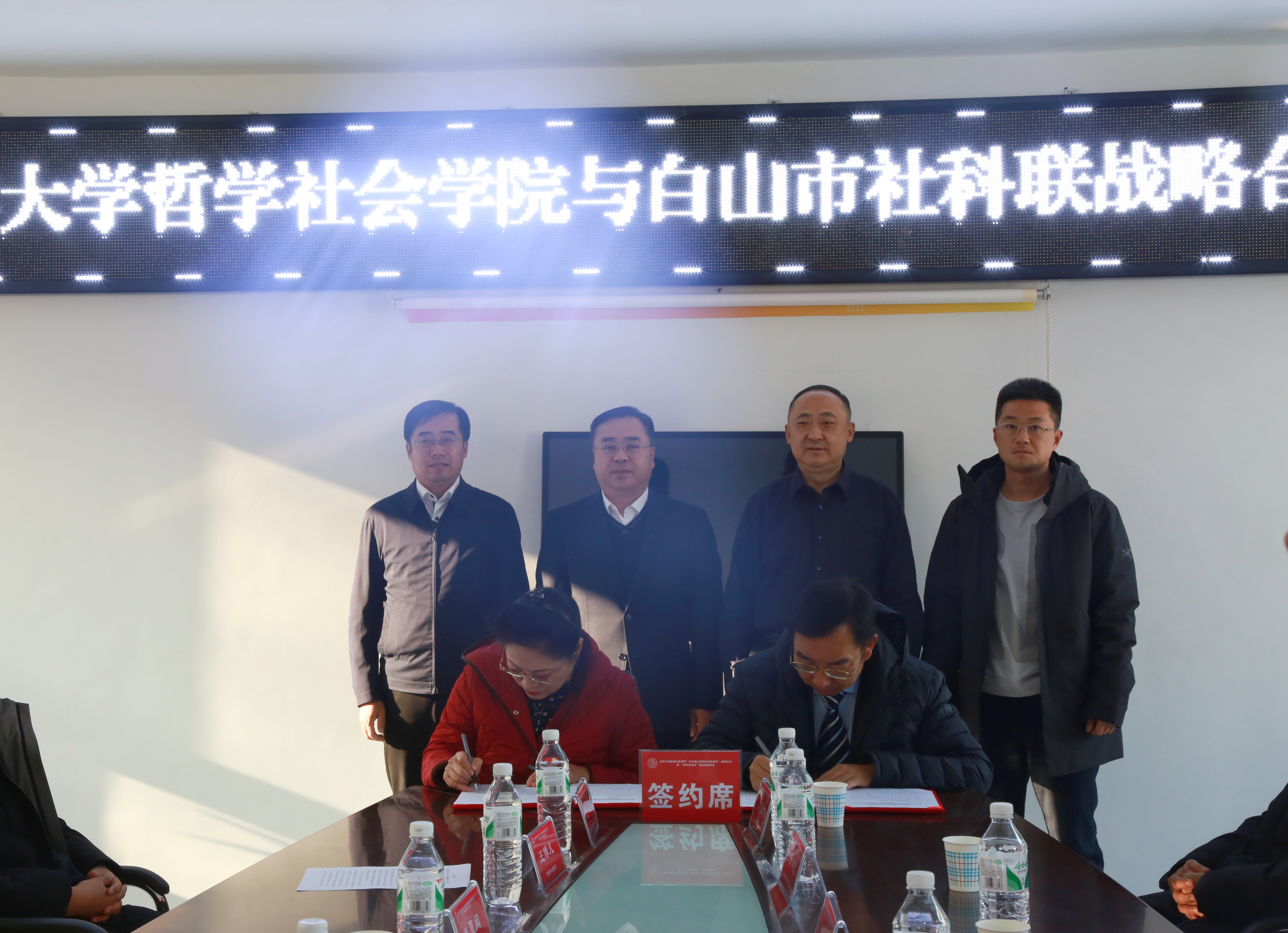 行政副院长朱文君、白山市社科联主席姜慧闻代表双方共同签署《重庆时时彩-重庆时时彩平台