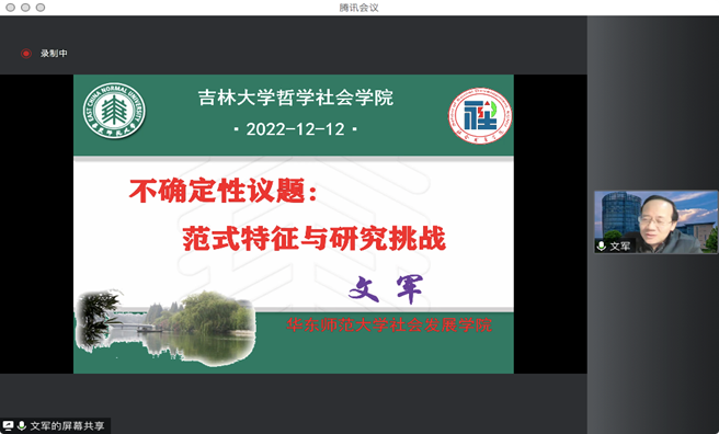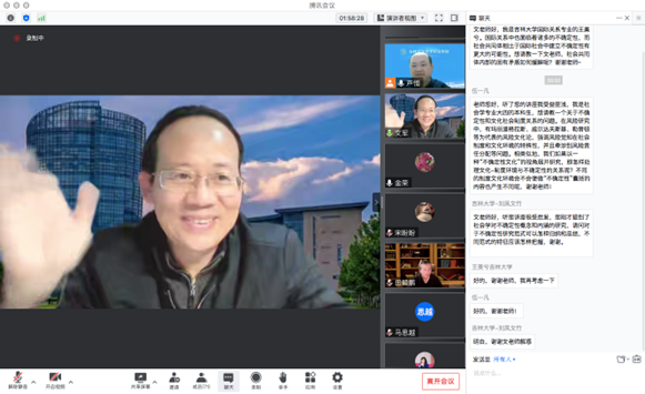 第170场名家讲座以腾讯会议的形式在线上平台举办,特邀教育部“长江学者”特聘教授、华东师范大学社会发展学院院长、教育部高校社会学类教学指导委员会副主任委员、中国社会学会常务理事、中国社会工作学会常务理事文军教授做题为《确定性议题:范式特征与研究挑战》的学术报告。本次讲座由我院副院长芦恒教授主持,院长田毅鹏教授及上百名师生线上参加了此次讲座。