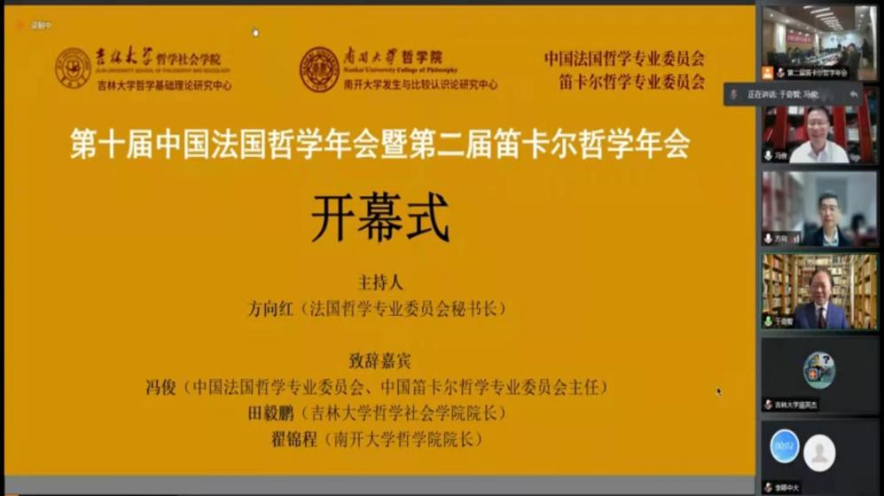、吉林大学哲学基础理论研究中心承办;本届笛卡尔哲学的主题是“笛卡尔哲学的方法及其影响”,由中华全国外国哲学史学会笛卡尔哲学专业委员会主办、南开大学哲学院、南开大学发生与比较认识论研究中心承办。《哲学研究》、《哲学动态》、《南国学术》、《社会科学研究》、《四川大学学报(哲社版)》、《道德与文明》、《哲学分析》、《吉林大学社会科学学报》、商务印书馆等单位对本次年会的举办提供了支持。来自国内外各高校的专家学者与参会者以线上的形式进行了热烈的交流与讨论。