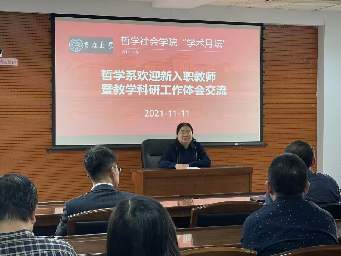 哲学系在东荣904会议室举办“学术月坛”活动。活动的主题是“欢迎新入职教师暨教学科研工作交流”。哲学系和学院办公室的33位老师参加了月坛活动。院党委书记李佰志、院党委副书记兼纪委书记赵洁、党委副书记兼副院长刘培强、副院长朱文君、副院长王福生、副院长曲红梅、副院长芦恒出席了活动。哲学系系主任白刚教授主持了这次月坛活动。白刚老师向大家介绍了新加盟哲学系的三位青年才俊——袁立国、云龙、郝志昌老师,并对他们表示热烈欢迎。
