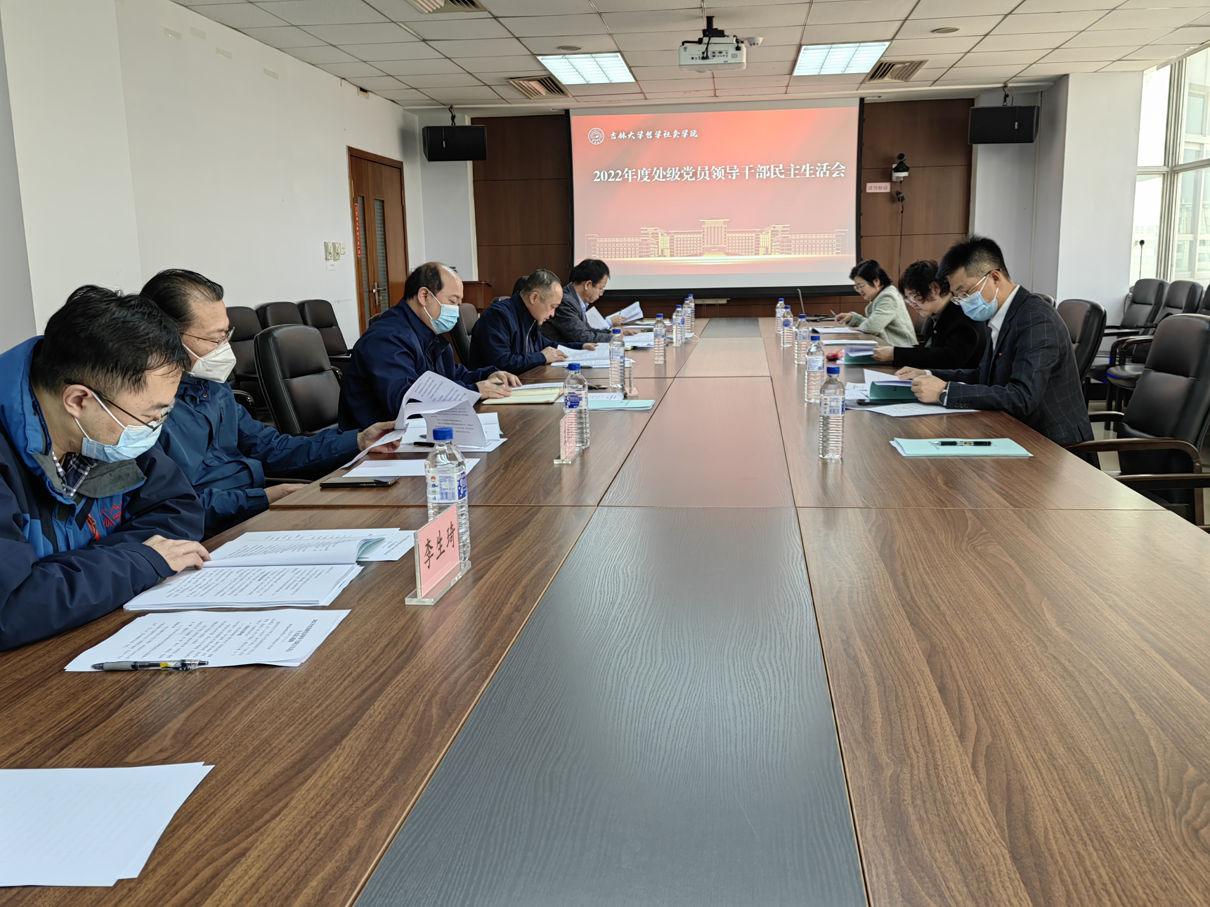 在东荣大厦908会议室召开2022年度处级党员领导干部民主生活会。学校第五督导组组长、党建工作联络员袁媛全程参会指导,学院党员处级领导干部参加会议。会议由党委书记李佰志主持。