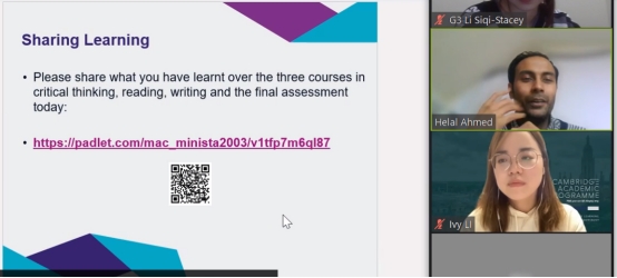在两位教授的指导下,我院学生分小组开展头脑风暴,集思广益,充分交流,积极提问,并分别从哲学、社会学、心理学等不同的学科视角出色地完成了结业考核汇报,得到了剑桥大学及帝国理工大学师资团队的好评。
