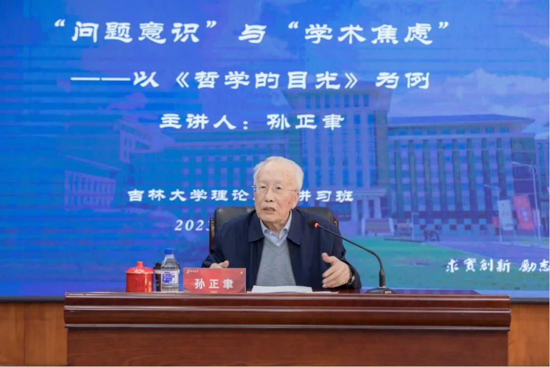 仪式后,孙正聿以“‘问题意识’与‘学术焦虑’”为主题,从“现实问题与学术问题”“现实焦虑与学术焦虑”“深层焦虑与‘清理地基’”“学术焦虑与‘理论思维’”“构建体系与‘术语革命’”五个方面进行授课。他指出,学术研究必须具有强烈的问题意识,而真正的学术问题,则必然来源于学者的“学术焦虑”。学术研究就是直面重大的现实问题,揭示、探索和回答重大现实问题所蕴含的重大理论问题,不断地“提炼出有学理性的新理论”和“概括出有规律性的新实践”。他强调,构建中国自主哲学社会科学知识体系,不是“中、西、马”三大体系的“概念移植”或“逻辑重组”,而是以“术语的革命”为“活的灵魂”,赋予学术思想、学术观点、学术命题以新的“思想内涵”“时代内涵”“文明内涵”,形成具有主体性、原创性的中国特色哲学社会科学。
