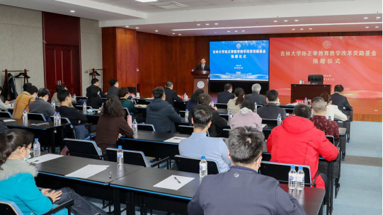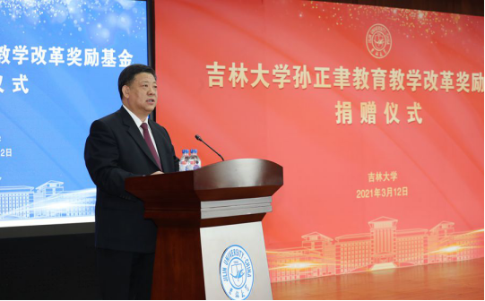 【文/张宏伟 摄/徐立华 张宏伟】正心精诚兴学育人,大爱情怀聿励后学。3月12日,吉林大学孙正聿教育教学改革奖励基金捐赠仪式在中心校区鼎新图书馆隆重举行。吉林大学哲学社会科学资深教授孙正聿将其获得的全国“杰出教学奖”100万元奖金全部捐赠给学校,设立“吉林大学孙正聿教育教学改革奖励基金”,专项用于奖励支持学校在教育教学改革研究和通识教育方面作出突出贡献的青年教师。校党委书记、学校教育基金会理事长姜治莹出席仪式并讲话。孙正聿教授给青年教师作了一场精彩报告。