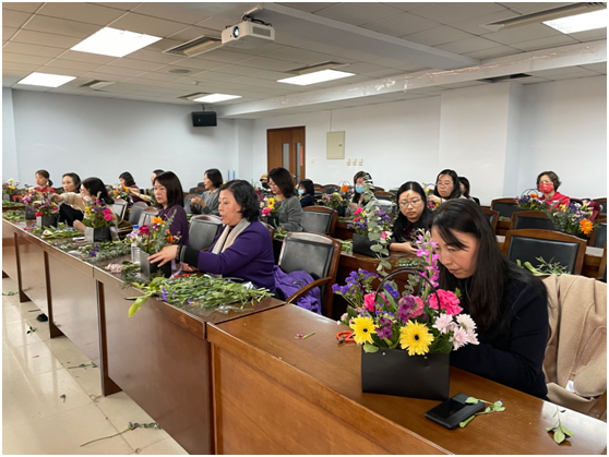 妇委会和工会的组织下,我院在东荣大厦904会议室举办了“情暖三月 花漾哲社”主题插花艺术鉴赏活动。学院30余名教职工参加了本次活动。