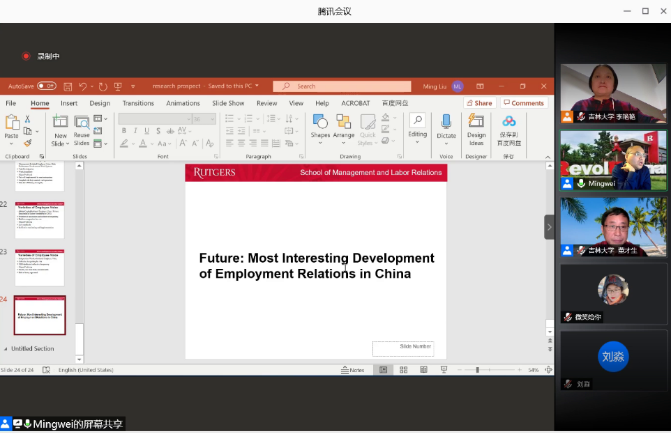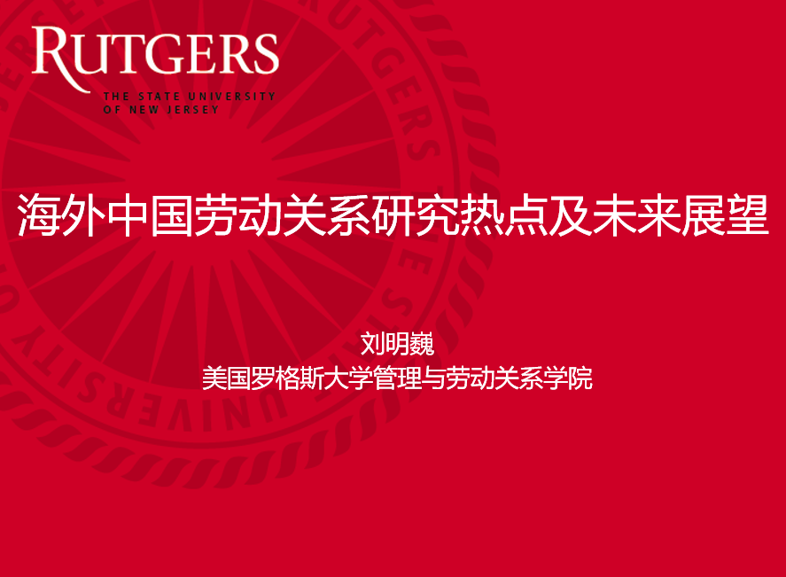 名家讲座第109场以腾讯会议的方式举行。美国罗格斯大学管理与劳动关系学院终身副教授、罗格斯-中国人民大学全球工作与雇佣中心主任刘明巍做了题为“海外中国劳动关系研究热点及未来展望”的学术讲座。本场讲座是劳动关系系列讲座第五场,由重庆时时彩