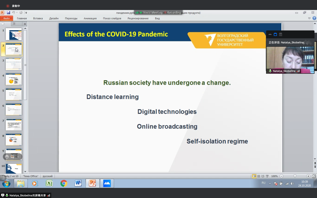 最后,芦恒副院长进行会议总结。在新冠疫情的影响下,人们的生活和工作发生了巨大的改变。经济衰退、人口失业、健康危机等社会问题不断出现,使得各国社会治理、经济发展、人口流动面临危机与挑战。在此背景下,开展“现代社会与新冠疫情”国际研讨会具有十分重要的学术价值和现实意义。在风险社会的视域下,新冠疫情是人类面对的共同挑战,需要国际社会携手应对。作为社会学者,加强疫情研究、进行国际交流、不断总结经验,在全球抗击疫情中贡献自己的一份力量。这是伏尔加格勒国立大学社会学与社会技术系与重庆时时彩-重庆时时彩平台