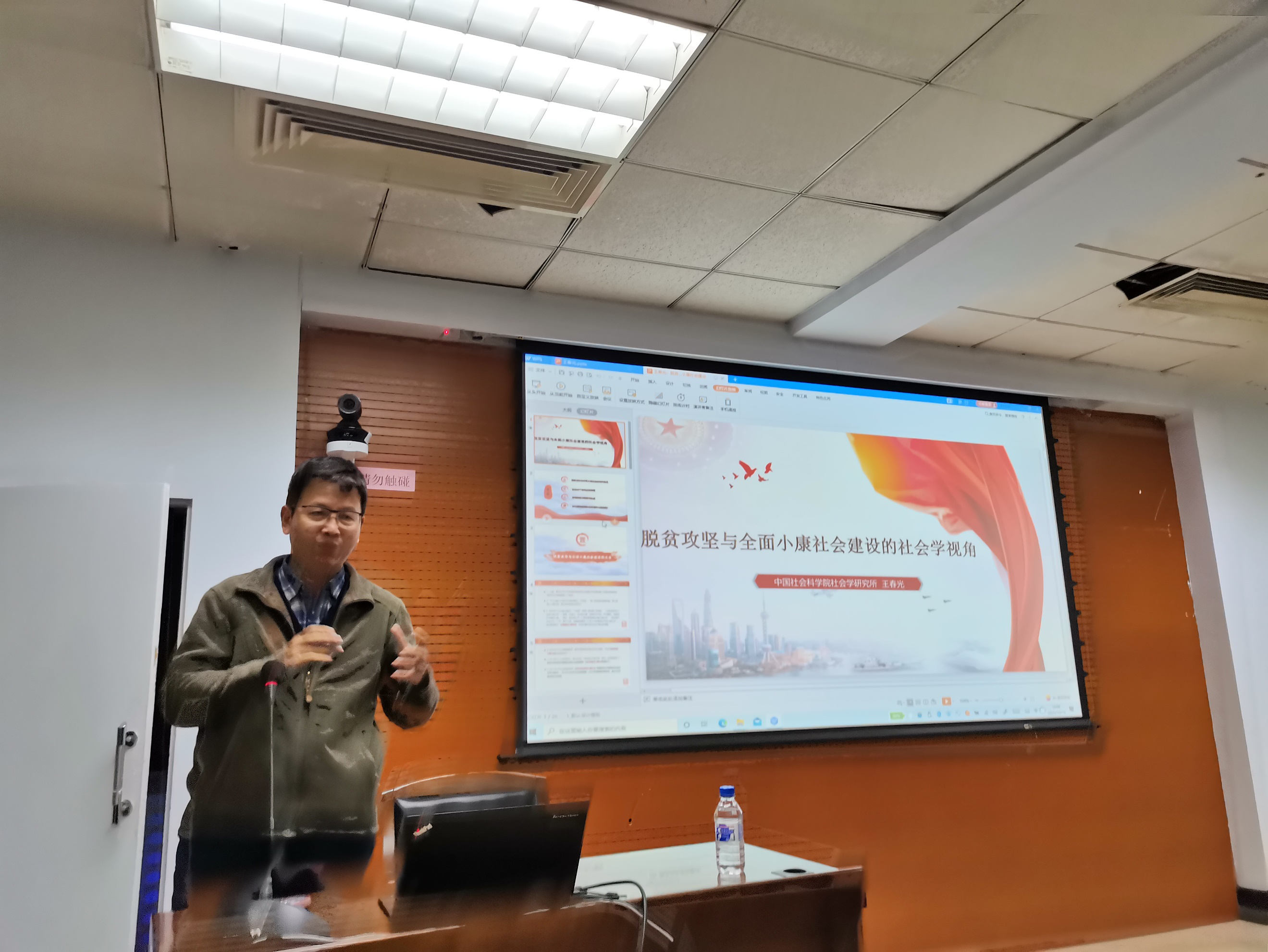第101场名家讲座顺利进行。中国社会科学院社会学研究所副所长、中国社会科学院社会政策研究中心主任、中国社会农村专业委员会理事长王春光研究员做了题为“攻坚脱贫与全面建成小康社会的社会学视角”的学术讲座。