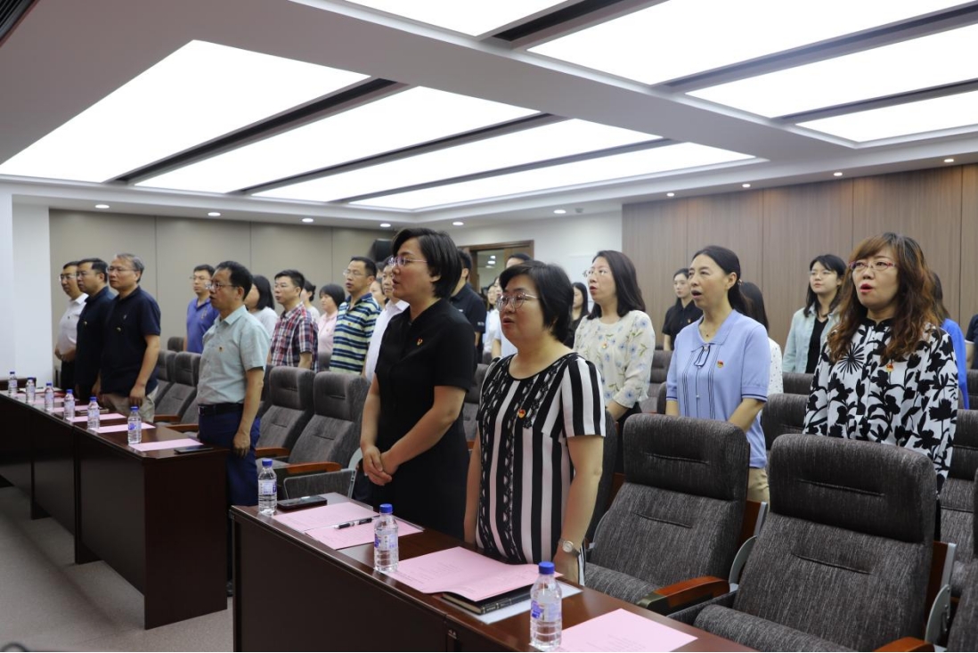 大会第五项,学院副院长朱文君带领全场师生党员一同重温入党誓词。党员们面向党旗,高举右手,庄严宣誓。“为共产主义奋斗终身,随时准备为党和人民牺牲一切,永不叛党。”坚定的誓言声铿锵恢宏,响彻全场,激励着各位党员不忘初心、牢记使命,在中国式现代化建设中切实肩负起新时代新征程党赋予的使命任务,为推进强国建设和民族复兴伟业接续奋斗。