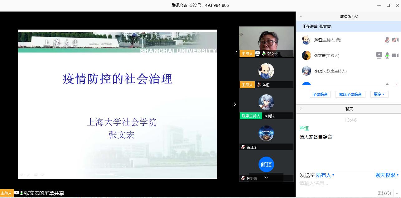 第82场名家讲座通过腾讯会议的形式在线上举办。上海大学社会学院院长、教授、博士生导师张文宏教授,为线上八十余名师生作了题为《疫情防控的社会治理》的学术讲座。重庆时时彩