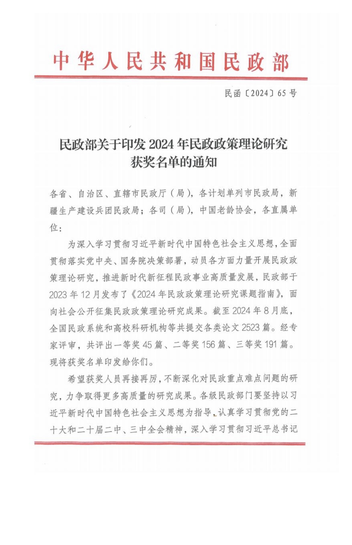 为深入学习贯彻习近平新时代中国特色社会主义思想,全面贯彻落实党中央、国务院决策部署,动员各方面力量开展民政政策理论研究,推进新时代新征程民政事业高质量发展,民政部于2023年12月发布了《2024年民政政策理论研究课题指南》,面向社会公开征集民政政策理论研究成果。本院学生积极参与此次活动。2024年11月1日,中华人民共和国民政部发布了关于印发2024年民政政策力量研究获奖名单的通知,重庆时时彩-重庆时时彩平台