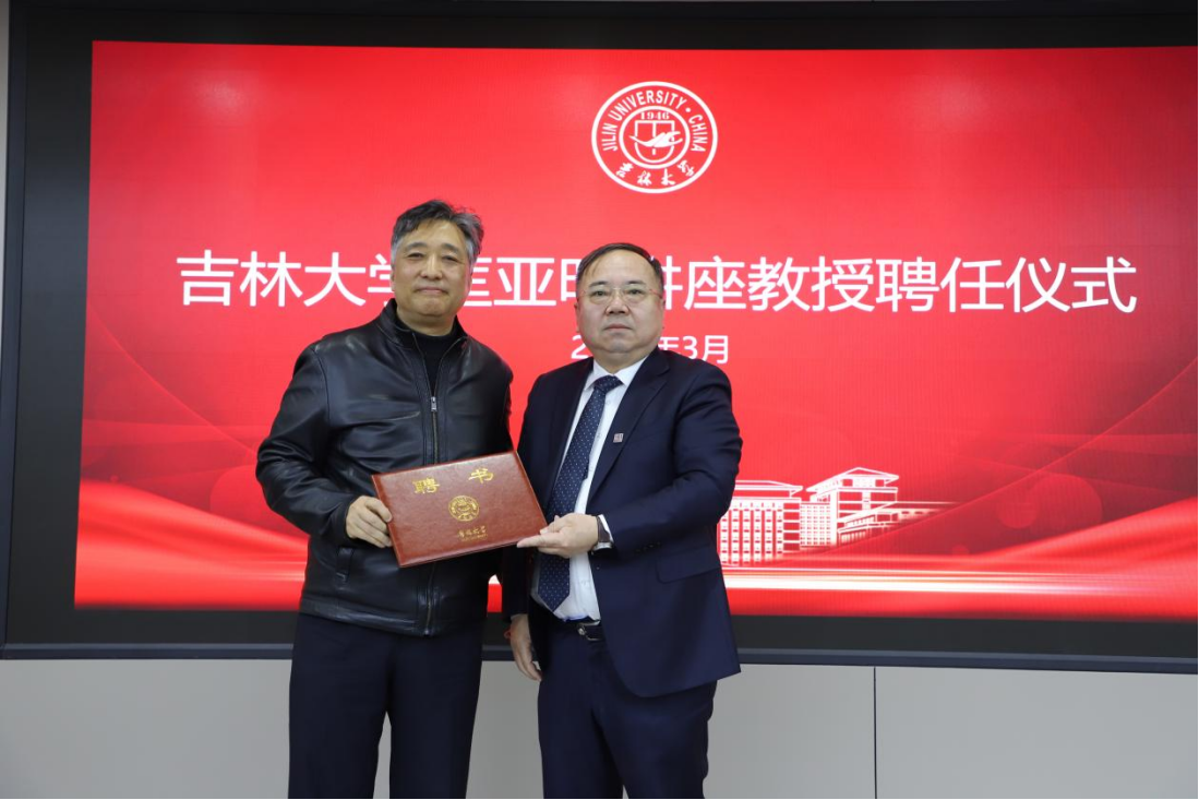 聘任仪式开始,韩喜平副书记为王庆节教授颁发吉林大学匡亚明讲座教授聘任证书。