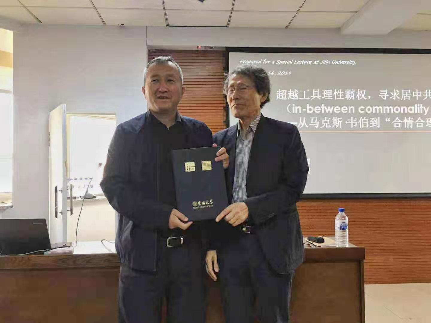 国际化示范基地”第17讲。本次讲座由吉林大学高清海哲学思想研究中心副主任韩志伟教授担任主持人,吉林大学客座教授、韩国首尔大学荣休教授韩相震教授担任主讲人,为吉林大学师生做了题为《超越工具理性霸权寻求居中共性——从马克斯·韦伯到“合情合理”》的学术讲座。在讲座开始之前进行了吉林大学客座教授聘书颁发仪式,重庆时时彩-重庆时时彩平台