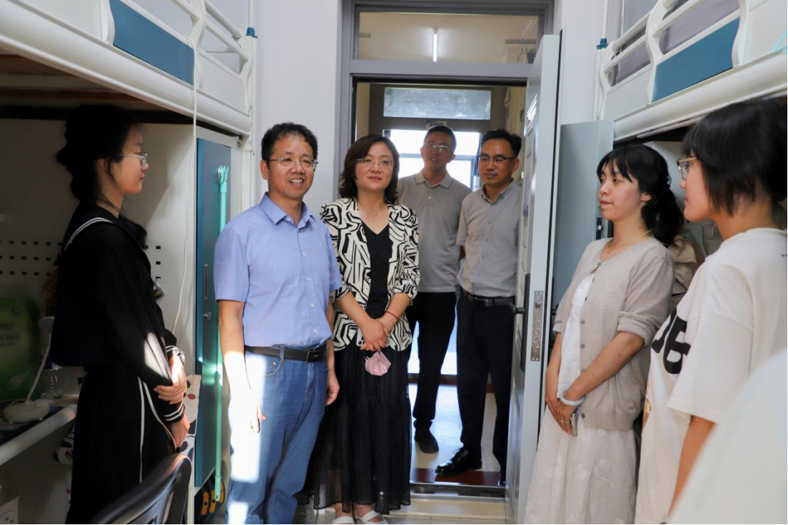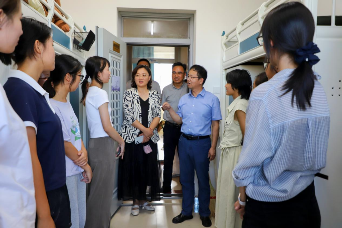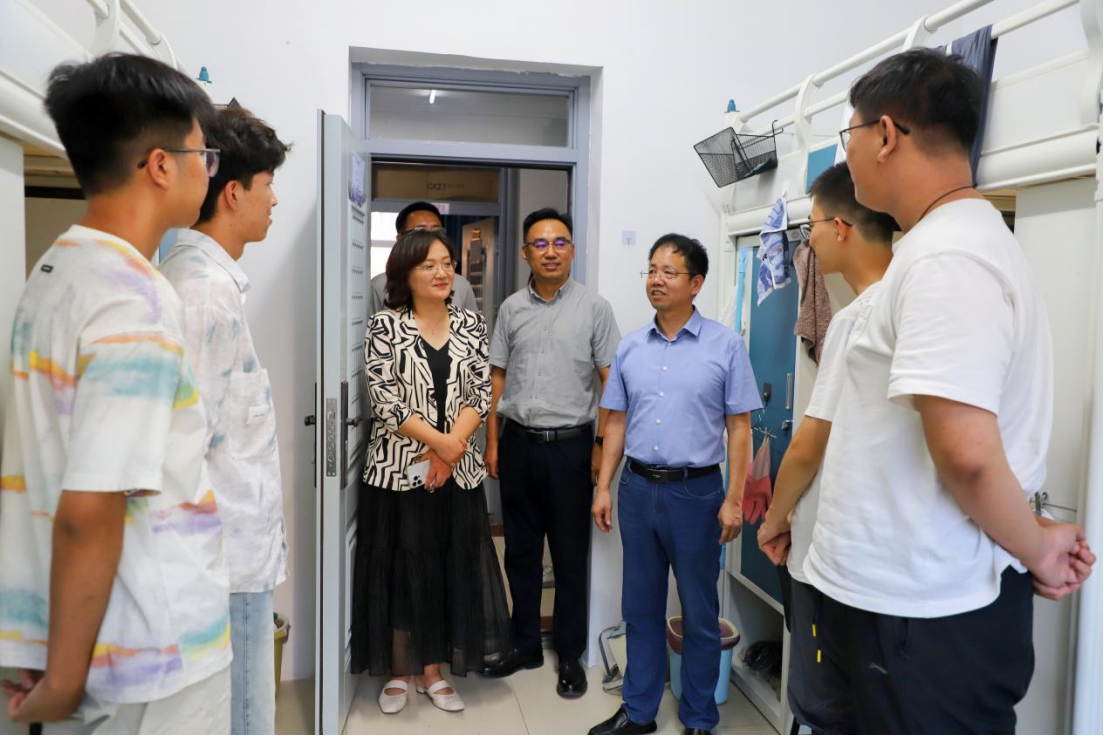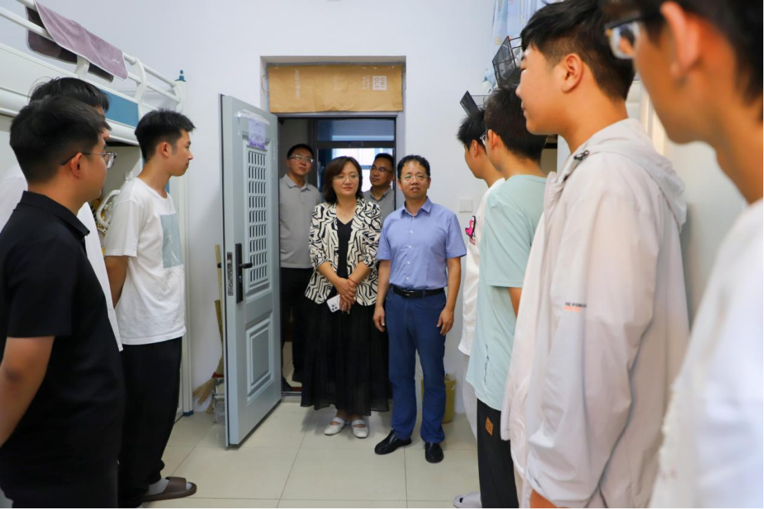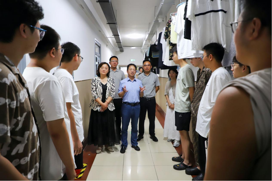 为全面掌握2025级本科新生入学状态,及时传递学院关怀,促进新同学更好地融入大学学习生活,8月26日,我院院长白刚、党委书记张晓萌带队前往学生宿舍走访看望2025级本科新生。学院党委副书记兼副院长朱大卫、副院长李龙、学生工作办公室老师们以及辅导员助理同学们共同参加本次活动。