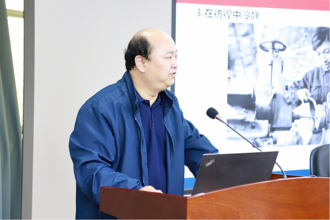接着,聂振勇老师围绕“鞍钢英模:时代精神的标尺”主题,向在场师生们介绍鞍钢集团成长历程中涌现的多位劳动模范和优秀代表。第一代钢铁人孟泰,“走在时间前面”的王崇伦,为人民无私奉献的雷锋,“当代雷锋”郭明义,“当代工人发明家”李超,以及更多优秀的鞍钢工人们,他们是鞍钢精神的坚定实践者,更是时代精神的标尺,他们的事迹指引着我们不断前进。