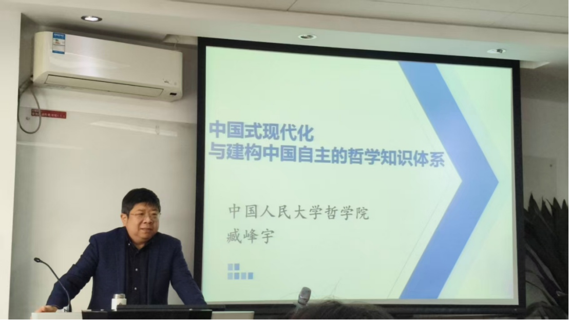 11月10日上午,中国人民大学哲学院院长臧峰宇为我院师生作了一场名为“中国式现代化与建构中国自主的哲学知识体系”的专题讲座。讲座梳理了知识体系的哲学发展脉络,强调建构中国自主的哲学知识体系是中国式现代化进程中文化自信与学术自觉的核心体现,这一体系的构建绝非一蹴而就,必须厚植学术根基,在漫长的学术积淀中逐步完善中国哲学的学科体系、学术体系与话语体系。