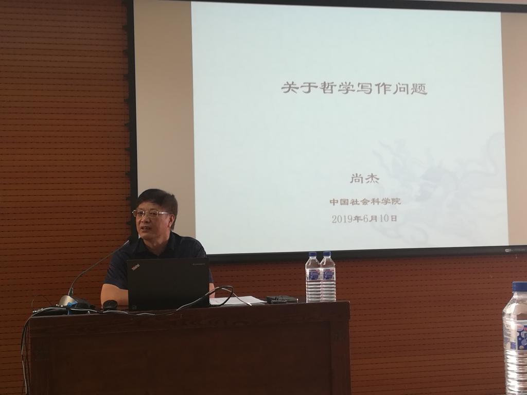 尚杰教授围绕“为什么写作是一个哲学问题”进行主题演讲。在主题讲解之前,尚杰教授首先针对同学们学习学术论文写作的问题分享了自己的写作和阅读经验、心得。尚杰教授认为,哲学思想是一种书面语,必须用文本的方式呈现出来。深刻的思想肯定是清楚的,写不清楚是因为没想清楚,而想清楚则涉及到读书和写作这两个环节。关于读书,尚杰教授分享了自己的四个经验:要读外文文献;直接读经典原著;抓文本主题与独立思考;关联式阅读。关于写作,尚杰教授提到,修辞是次要的,要抓住即兴创作,勤学多练,丰富知识背景等。在分享完写作和阅读经验之后,尚杰教授针对“为什么写作是一个哲学问题”这一问题,进行了三方面的讲解。第一,哲学是写出来的不是说出来的。尚杰教授旁征博引,通过对从亚里士多德到萨特等哲学史著名哲学家关于文本、写作和翻译的论述的讲述,说明了哲学写作作为专门的哲学问题在哲学研究中的重要性。第二,哲学如何写作——对所谓学术写作规范的质疑。学术写作的规范虽然具有一定的重要性和必要性,但是过于根据写作规范写作会影响理论的创新和写作水平的发挥。例如一种典型的批评是写作需要有中心主题,但是所谓的中心并不存在。写作的过程是一个疏远的过程或变异的过程,所谓的专注其实也是一种“走神”。写作不能只注重写作规范,还应该体现出个人的写作风格。第三,写作的危险与趣味。尚杰教授通过引证和举例,揭示了哲学写作虚构和脱离实际的危险性,在哲学写作的过程中容易用文字的感觉代替真实的感觉,陷入自我陶醉和自我迷失。尚杰教授指出这种哲学写作过程是一个消极和积极因素兼具的过程。此外,他也指出,思想要成为有趣的思想,哲学写作应该具有趣味性。在讲座最后,尚杰教授分享了许多写作经验和写作方式,并与同学们进行了热烈地交流,对同学们提出的问题予以详细的解答和讲解。
