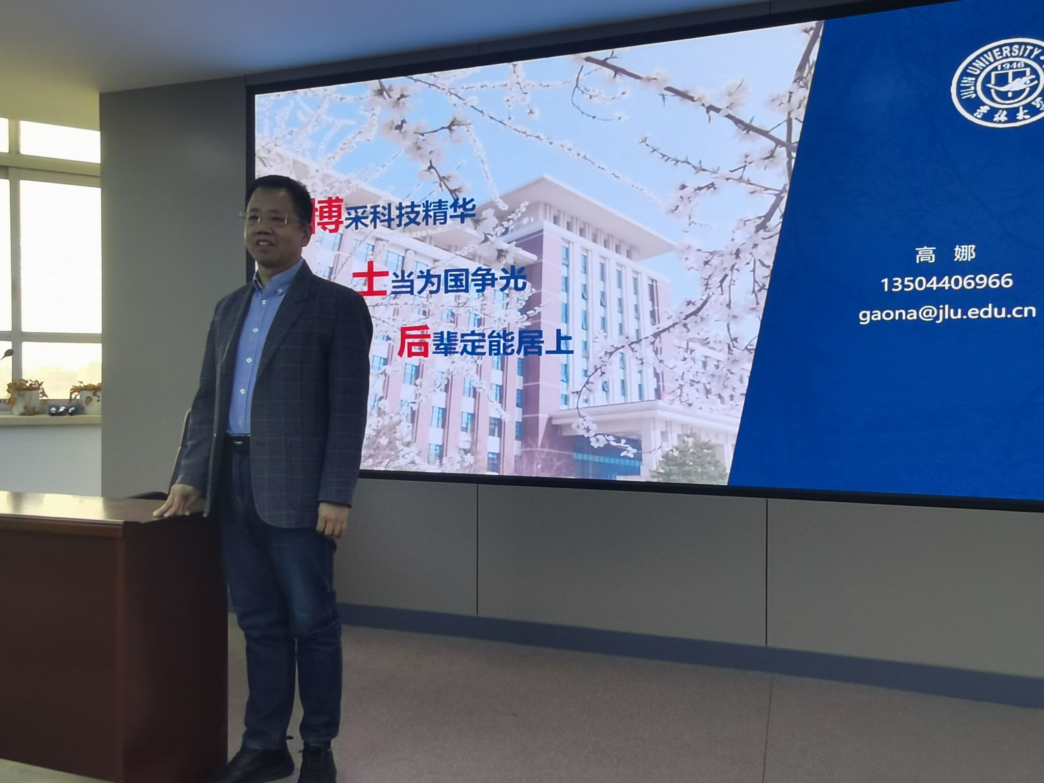 博士后政策专题宣讲会在东荣大厦904会议举行。吉林大学人力资源处副处长兼博士后工作办公室主任高娜,博士后工作办公室副主任李雪涛及秦民杰老师一行莅临本院,我院党委书记张晓萌、院长白刚、副院长芦恒以及部分博士生导师和博士生参加此次活动。