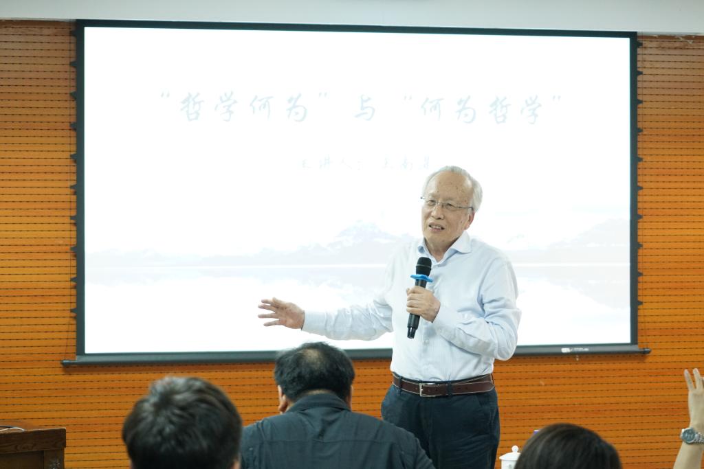 讲座过后,吉林大学资深教授,哲学基础研究中心主任孙正聿教授对王南湜教授的精彩讲座进行了简要总结。孙正聿教授高度赞扬了王南湜教授学术生涯及其高尚人格的一致性,他指出,王南湜教授的讲座涉及了“从最传统到最前沿”,“从最基础到最现实”,“从最西方到最中国”这三个问题域,展现出了南湜教授本人博大深邃的哲学思想。孙正聿教授认为,王南湜教授从“学以成人”出发,导向了哲学对学以“成人”的作用,最终切中了“人”这一哲学的主题,是一种“真实的逐层深入的思想的前提批判”。最后,孙正聿教授推荐同学们进一步学习与研读王南湜老师的著述及研究成果,从而进一步把握王南湜教授对哲学的深邃思考。王南湜教授在本场讲座中表现出其宽广的学术视野与丰富的人生阅历,通过巧妙引用各种历史典故、隐喻、个人经历及各类新闻实事等,使在座师生对讲座主题有了更为深刻的认识和理解,进而为各位老师与同学们带来了一场宝贵的精神盛宴。(王瀚祺供稿)