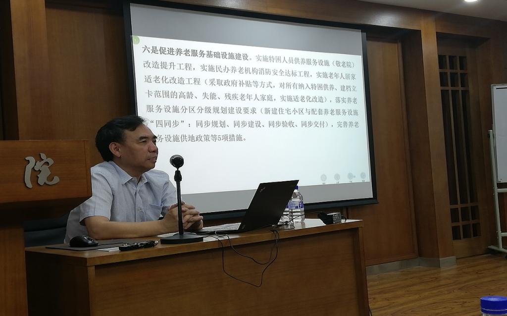 王杰秀教授首先简要介绍了民政工作的相关内容,对民政的概念、宗旨、关注对象和职责做出明确界定,并指出中国养老服务工作正受到社会各界和广大民众的密切关注,由此现象出发引出本场讲座的正式内容。