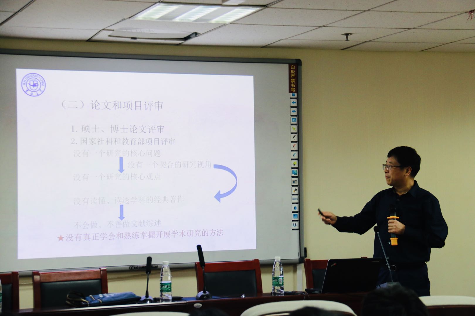 2019年5月24日,我院董才生教授受邀在山东大学哲学社会发展学院主办的“朱雀专家讲座”作了题为“学术研究的基础与关键”的学术报告,山东大学哲学与社会发展学院社会系系主任林聚任教授主持了本次报告。董才生教授结合学风建设与自身科研经验,指出学术研究的基础应是读懂、读透学科的经典著作。认为可以通过是否触及学科本质、是否“合逻辑和事实之理”等标准去判别是否经典著作。在读懂与读透经典著作的目的指引下,带着“框架”去读,“逐字逐句地”去读,达到“外在知识内在化”和“内在知识外在化”效果。在阅读过程中要掌握显性含义的隐性深意,要忠于文本,要对著作的每一自然段、每一节、每一章和整体内容进行概括,并在它们之间建立内在的逻辑联系,要将经典著作的思想或观点置于学术脉络中展开评价等。董才生教授进一步指出,学术研究的关键是会做、善做文献综述,这也是确保研究创新性、价值性的来源。学术理论创新,除了通过对现实的敏锐观察实现之外,还可以通过文献综述去实现。文献综述需要基于确定的论域和一定的文献搜索能力,能够“走进去”,认真研读文献,通过理论思维发现问题;能够“跳出来”,解决核心问题、构建核心观点,最后“再走进去”,以构建的核心观点去重新整理文献、述评文献。