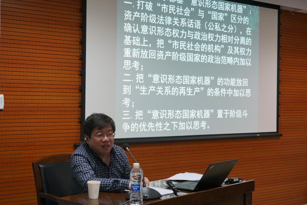 陈越副教授充分论述了阿尔都塞与葛兰西关于难题性的回答,葛兰西“阵地战”隐喻-概念在马克思主义人民战争话语中的非同寻常之处,在于提供了一种新的、去军事主义的军事化政治话语。而另一方面阿尔都塞的“意识形态国家机器”打破了“市民社会”与“国家”区分的资产阶级法律关系话语(公私之分),在确认意识形态权力与政治权力相对分离的基础上,把“市民社会的机构”及其权力重新放回资产阶级国家的政治范畴内加以思考;把“意识形态国家机器”的功能放回到“生产关系的再生产”的条件中加以思考;把“意识形态国家机器”置于阶级斗争的优先性之下加以思考。