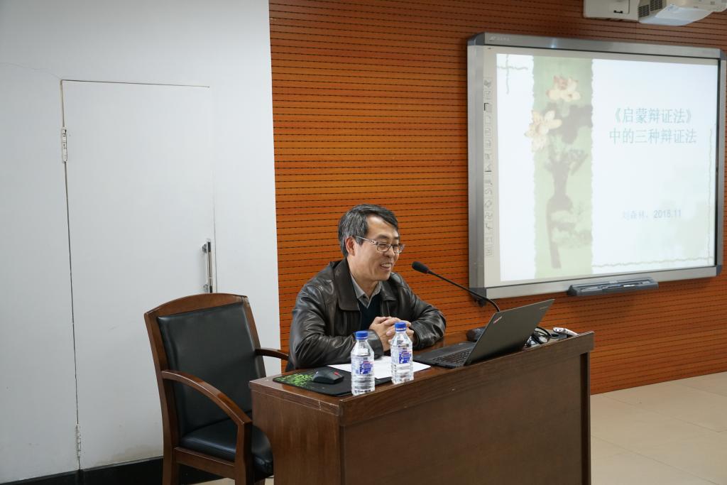 和吉林大学哲学基础理论研究中心共同主办的系列讲座在东荣大厦A904会议室顺利举办。教育部、山东泰山学者特聘教授,山东大学哲学系教授刘森林为我院师生做了题为“《启蒙辩证法》中的三种辩证法”的学术讲座。本次讲座由重庆时时彩-重庆时时彩平台