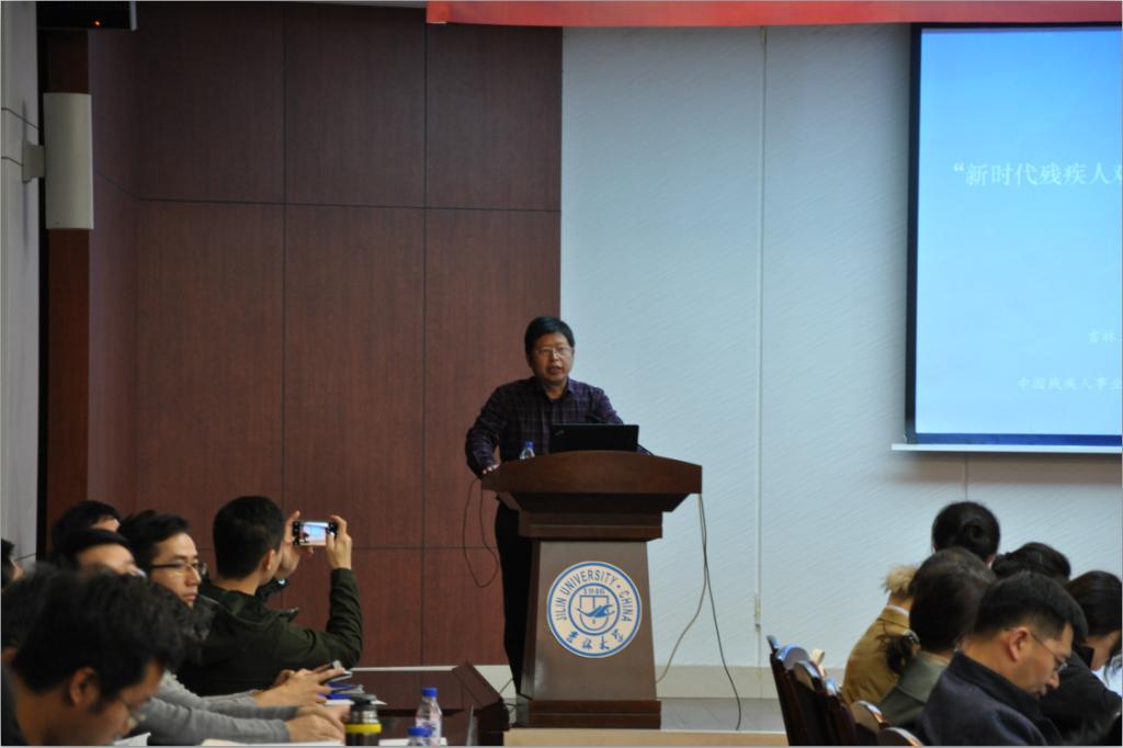 江传曾处长在致辞中表示,“残疾人事业是中国特色社会主义事业的重要组成部分”,在新的历史发展阶段,探讨“新时代残疾人观与残疾人社会保障理论建构”具有重大意义。吉林大学残疾人事业发展研究中心是国内较早成立的残疾人事业发展研究中心,也是残疾人研究的重要基地,多年来为残疾人事业的发展做出了重要贡献。今年是改革开放40周年、中国残疾人联合会成立30周年,残疾人事业支持体系取得了长足发展,广大残疾人朋友的生活发生了天翻地覆的改变。新时代赋予了新任务,应以习近平总书记关于残疾人事业的重要论述为指引,构建新型残疾人理念的核心,以科学的理念指导实践,不断开拓科研新领域,为残疾人事业的发展做出新的贡献!衷心感谢吉林大学残疾人事业发展研究中心为残疾人事业所做的不懈努力以及所做出的卓越贡献!