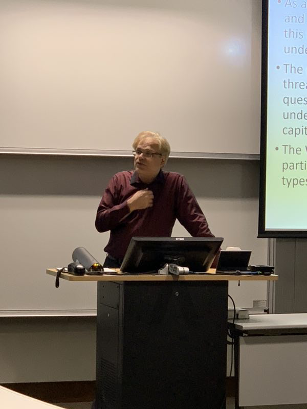 工作坊活动首先由香港科技大学的Eric Nelson教授作主题发言。Nelson教授的发言集中论述当代新儒家思想在中西方比较哲学研究中的影响与贡献。在发言中,Nelson教授回顾了哲学作为一门学科在西方历史中的发展及其所研究的问题。在此基础之上,Nelson教授以当代新儒家所发表的《为中国文化敬告世界人士宣言》为例来说明当代新儒家在西方哲学思想影响下的对于中国古代文化资源进行重新建构的开创性贡献。Nelson教授认为,正因为当代新儒家的努力,使得中西方思想在学理上达到了真正意义上的碰撞。在Nelson教授发言后,我院高天驹、钟玉晨、梅寒、李鸽、郝金花五位同学与香港科技大学的四位同学一起参加了学生论坛环节。我院五位同学用英文就东西方比较哲学问题表述了各自的观点,并就相关问题与香港科技大学的同学们进行了讨论。高天驹同学认为,庄子与康德分别以“逍遥游”和“意志自律”为实质建立起各自的自由观,庄子通过“体道”实现“绝对自由”,而康德则通过道德主体的实践达到自由,将人的真正自由建立在道德律之上;钟玉晨同学论及康德伦理学中唯一的情感因素——敬重感,并对敬重感在康德道德哲学体系中作为道德行为的本质要素的合理性进行说明;梅寒同学提出,依中国哲学史自身发展的历程,中国哲学未来的发展将会从形上的理论框架转向社会政治的体系框架和日常生活中;李鸽同学以保罗·利科解释学中对五种间距功能的理解为背景,提出了在间距概念生产性的积极意义上,从间距视角来理解中西方哲学跨文化研究的可能性;郝金花同学认为,郭象在《庄子注》中,通过对“有”和“无”之间关系的打断,同时打断了常规意义上的生和死的联系,从而回应了魏晋时期竹林一派所带来的对生命和死亡的破坏性的虚无。在学生讨论环节结束后,由来自香港中文大学的David CHAI教授作了此次工作坊的总结发言。CHAI教授以天、死、有等概念的中英文内涵比较为例,指出了中西方哲学概念在指意上的不同,这是在作跨文化哲学研究中需要特别注意的问题。