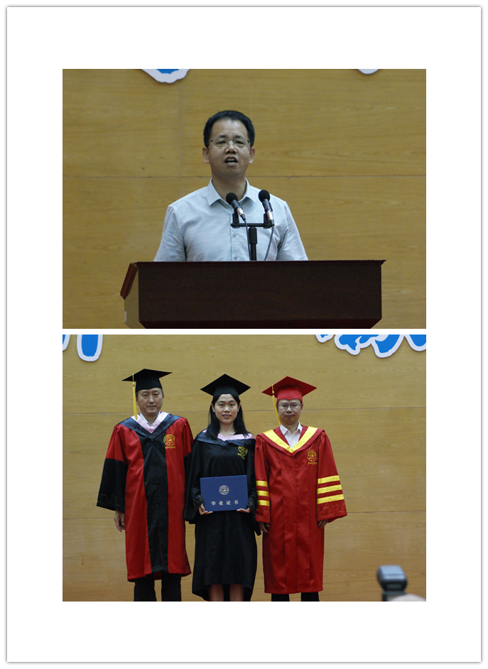 随着音乐的响起,院长田毅鹏教授和学位委员会主任贺来教授缓缓走上讲台,为本科、博士与硕士毕业生依次颁发毕业证书。贺来教授为毕业生拨穗,田毅鹏教授亲自向毕业生授予毕业证书。同学们心怀感恩,激动地同两位教授一一握手,并合影留念。
