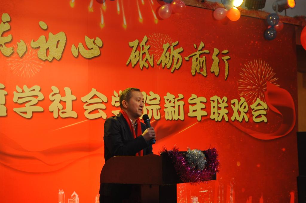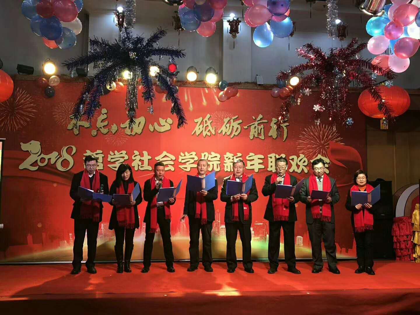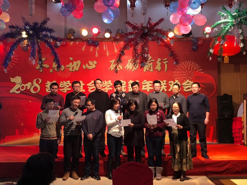 院长田毅鹏老师从科学研究、学科建设、人才培养等方面所取得的成绩对学院2017年工作做了简要总结,并祝愿学院能够在2018年这个同时迎来哲学系建立60周年暨社会学系建立30周年这个大庆之年取得更大的进步。吉林大学哲学社会科学资深教授孙正聿老师表示,“过去了的一切,都将成为亲切的怀恋”,并祝愿大家能度过一个愉快的新年联欢会。