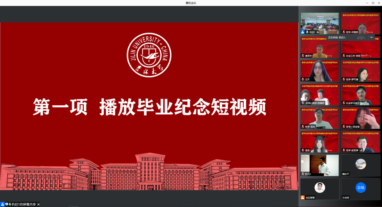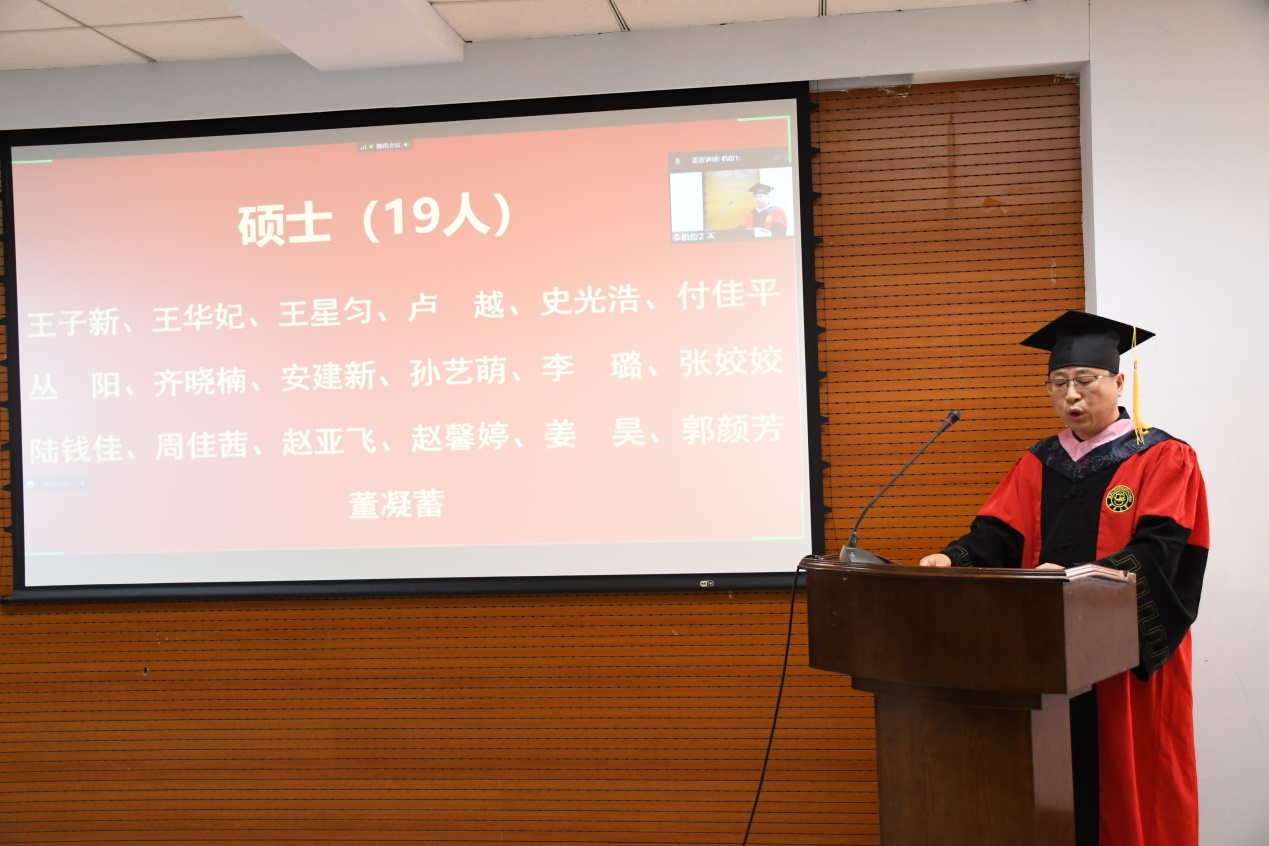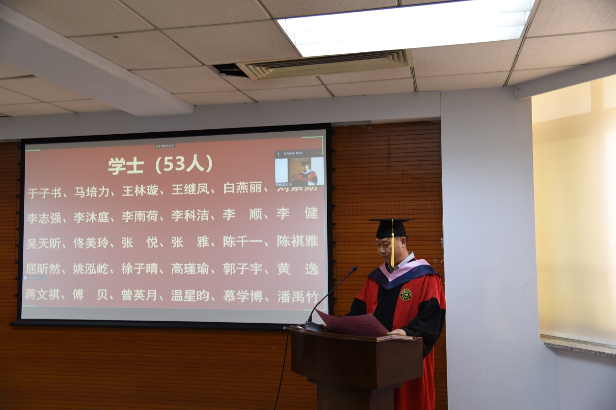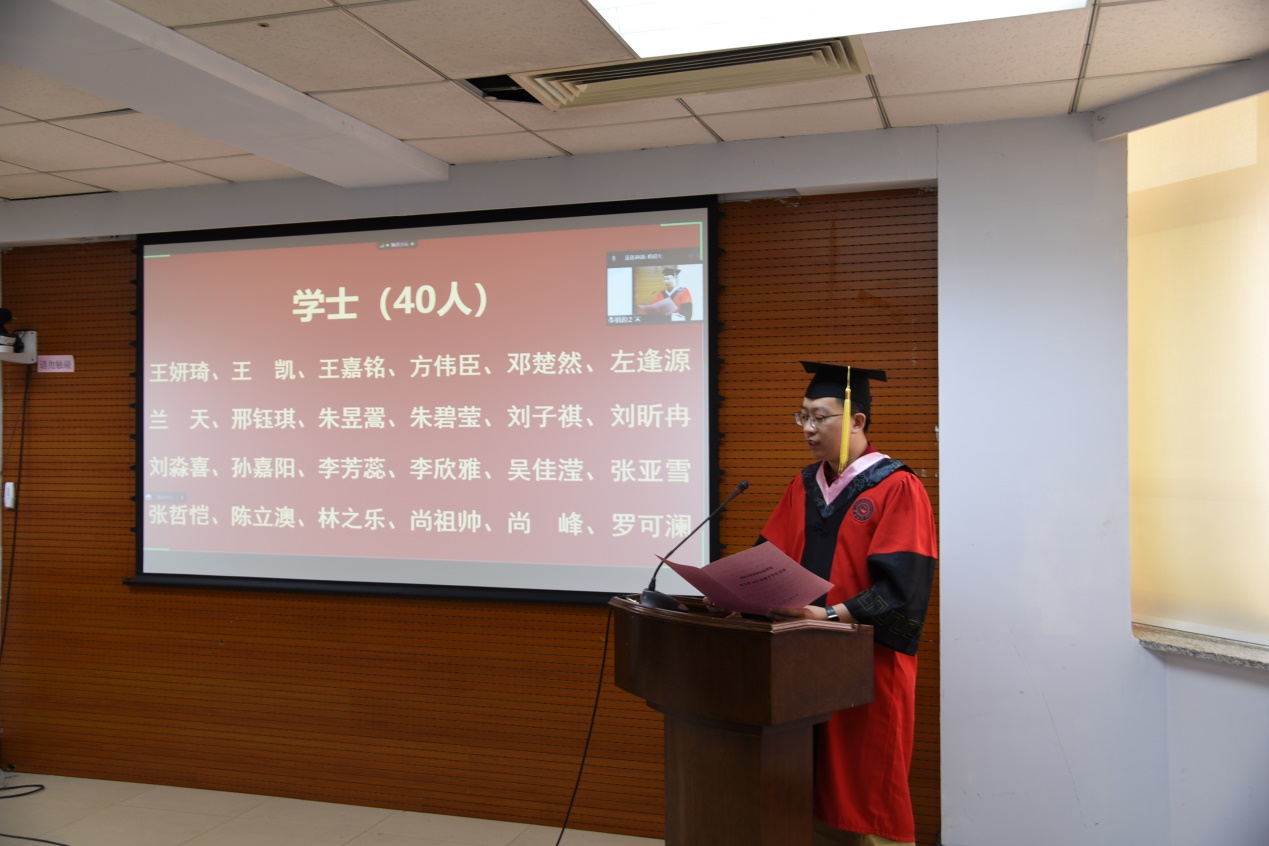 2022年毕业典礼暨学位授予仪式以线上线下相结合的方式如期举行,主会场设在东荣大厦904会议室。
