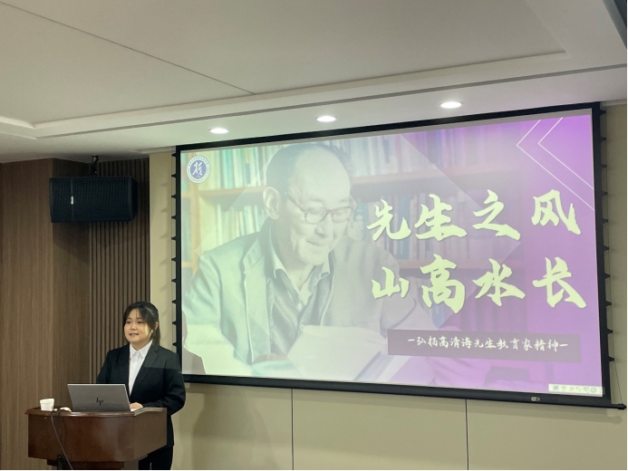 2024级本科生叶建慧同学以“先生之风,山高水长——高清海先生的教育家精神”为主题,生动讲述了吉林大学哲学系主要创始人之一高清海先生扎根东北、兴教育才的高尚事迹。同时,她详细讲解了高清海先生教育家精神中所蕴含的“为人治学,其道一也”的学人态度、“面对事情本身的苦读”的精神事业、“中华民族的未来发展需要有自己的哲学理论”的思想志业。高清海先生的教育家精神将继续引领一代又一代哲社学子在这片“北方有哲思”的黑土地上接力书写“先生之风,山高水长”的教育家诗篇。