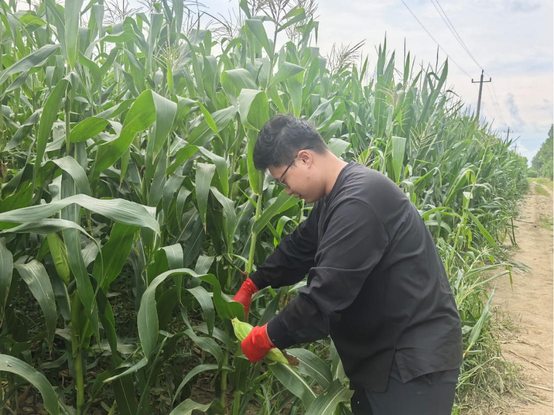 随后,团队去往季家村鲜食玉米厂的原料产地,将课堂搬到田间地头。实践团队走进玉米地,走入农民间,接地气、沾泥土、增见识、长才干,在乡土实践中深刻体悟何为“把论文写在大地上,把成果留在农民家”。
