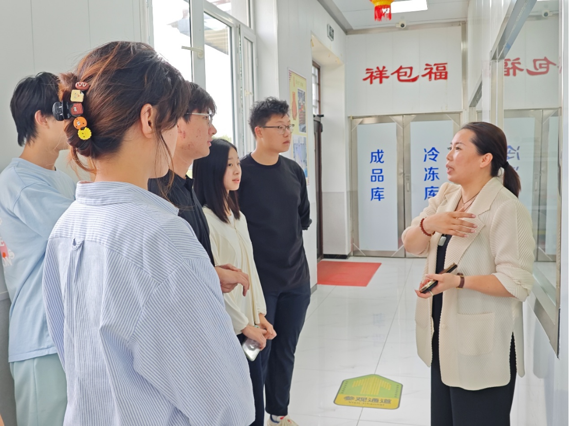 其中,实践团队重点参观了九连山村“祥包福”豆包厂,调研了吉林本地传统农业产品的现代化生产之路。负责人向大家讲述了九连山村豆包产业的发展过程,详细介绍了豆包产业的产品定位、品牌设计、电商发展。团队成员与负责人深入探讨,就挖掘传统农业产品潜力,推动特殊产品产业化发展积极建言献策。