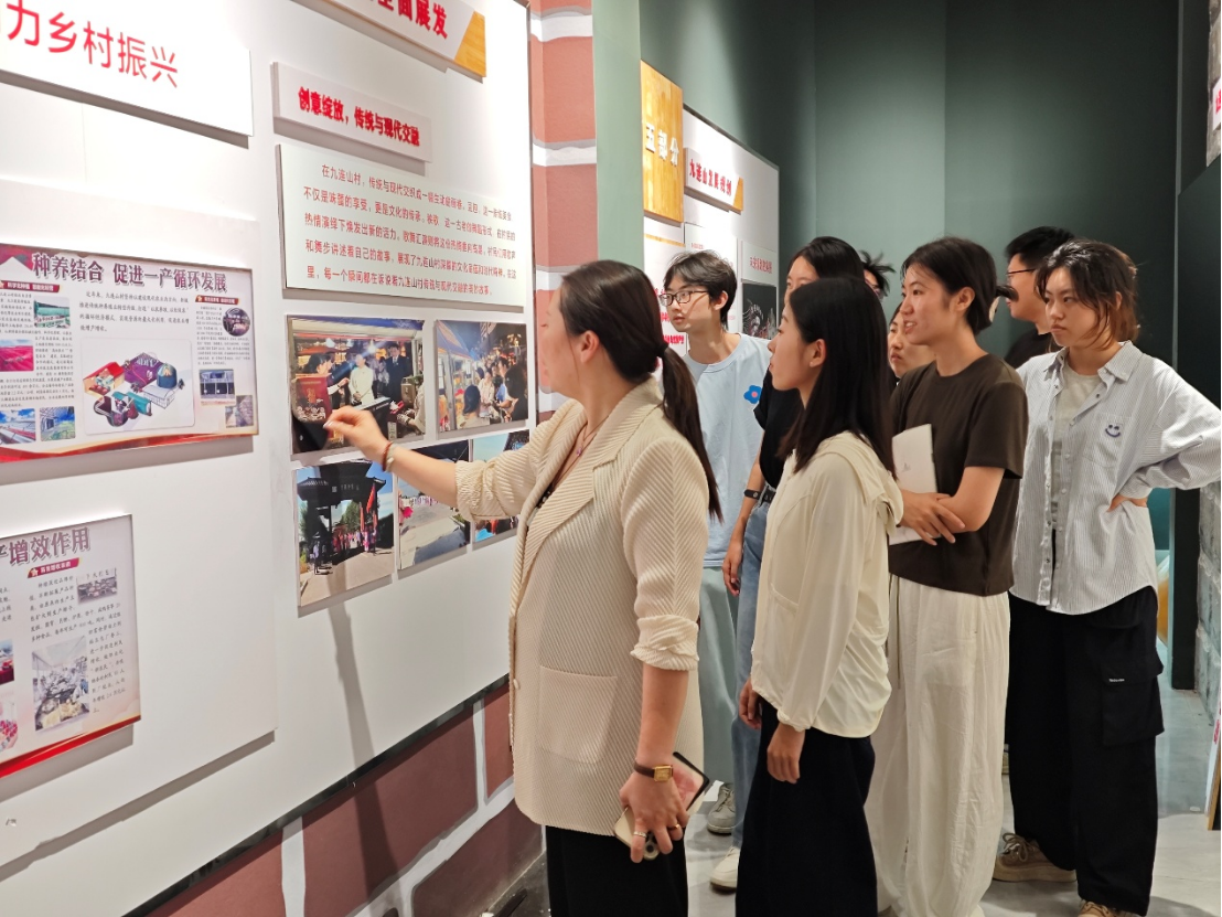 接下来,实践团队转赴永平乡九连山村,永平乡宣传委员、九连山村党支部书记李贺详细给团队成员介绍了九连山村情况,带领大家参观了文化广场等地,全面展现了新时代乡村的村风民情,其独特的党建文化给大家留下了深刻印象。实践团队和村党支部书记就乡村文化建设如何在新时代三农工程中发挥“兴农”“育农”“助农”的积极效果进行了深入探讨。