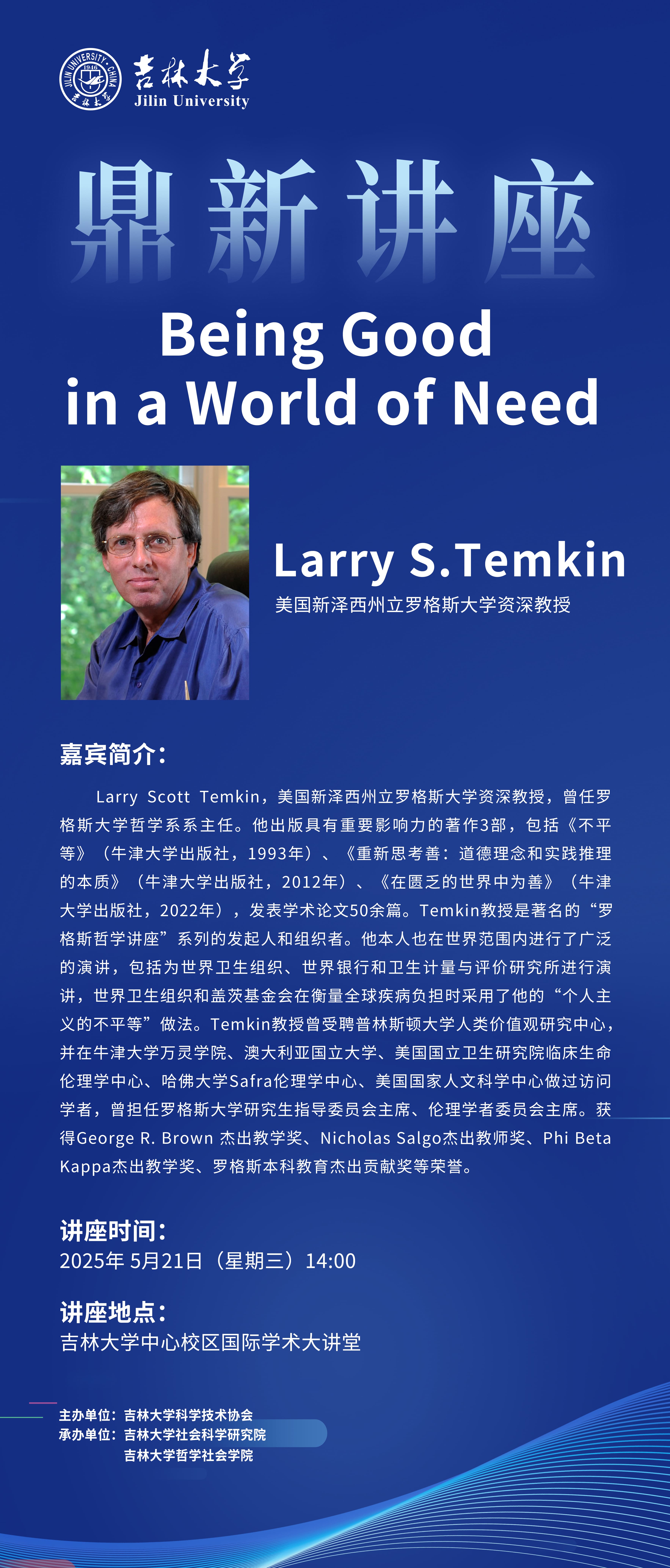 【吉林大学鼎新讲座】Larry S. Temkin:Being Good in a World of Need