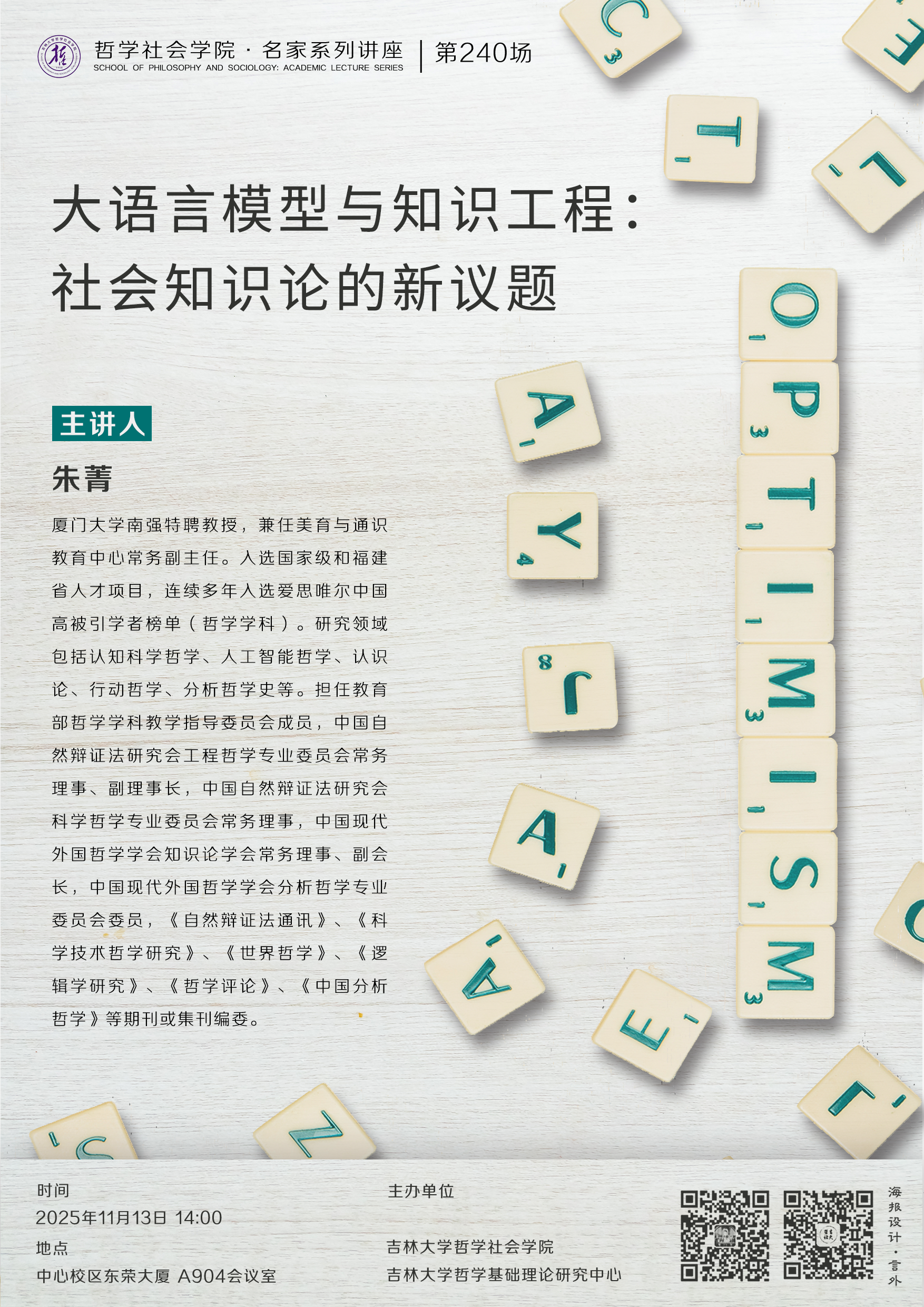 【重庆时时彩 名家系列讲座第240场】朱菁:大语言模型与知识工程:社会知识论的新议题