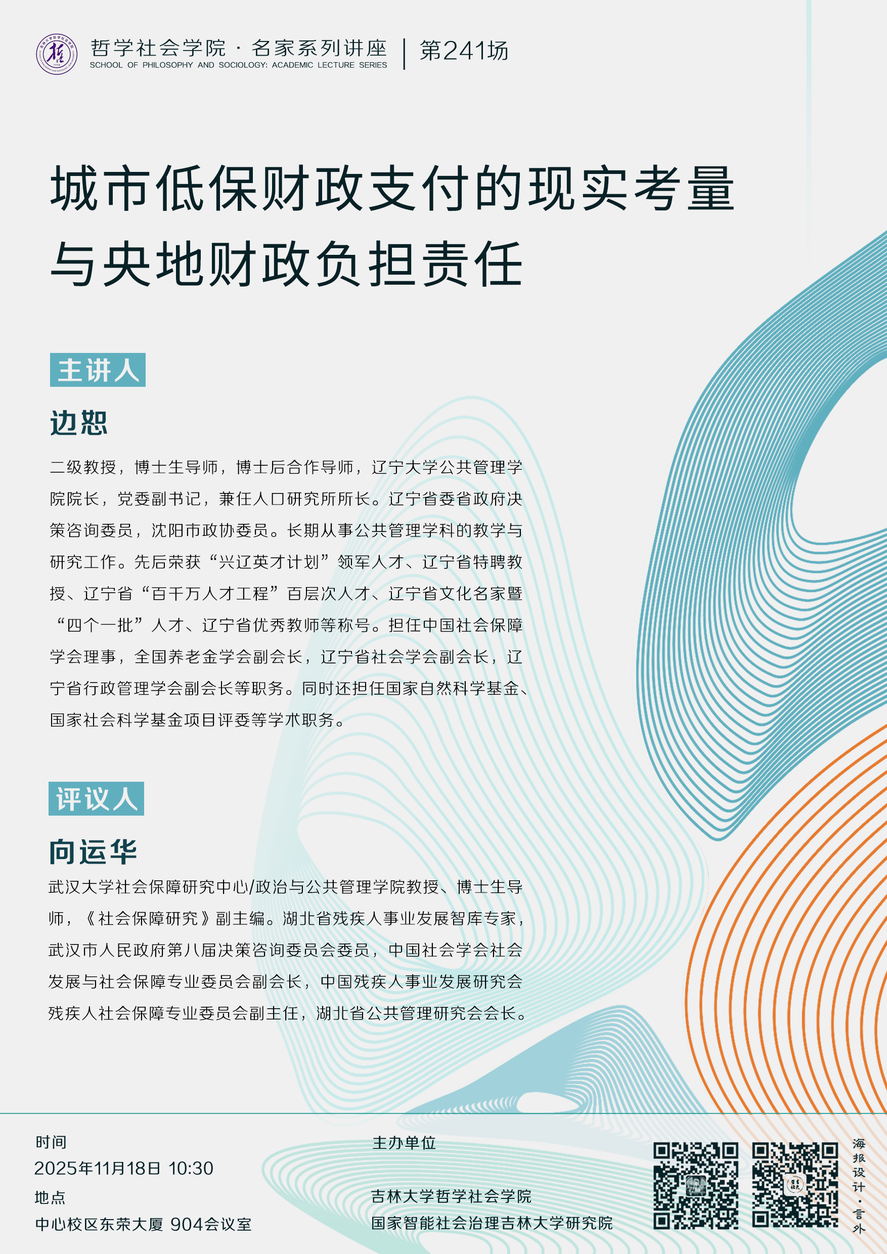 【重庆时时彩 名家系列讲座第241场】边恕、向运华:城市低保财政支付的现实考量与央地财政负担责任