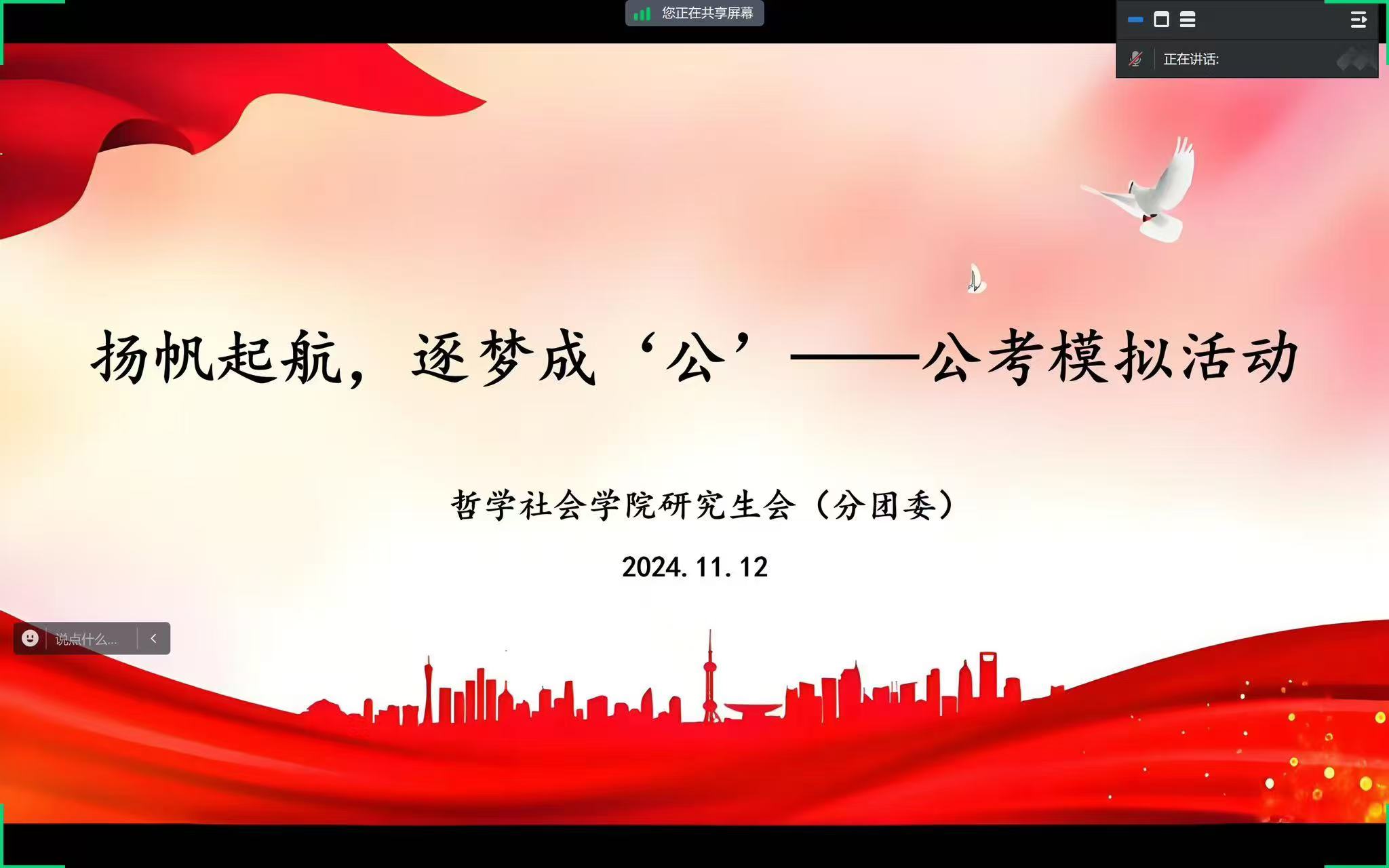 于2024年11月12日举办公考模拟活动,以模考形式帮助同学们提前适应公考考试节奏、积累公考实战经验。