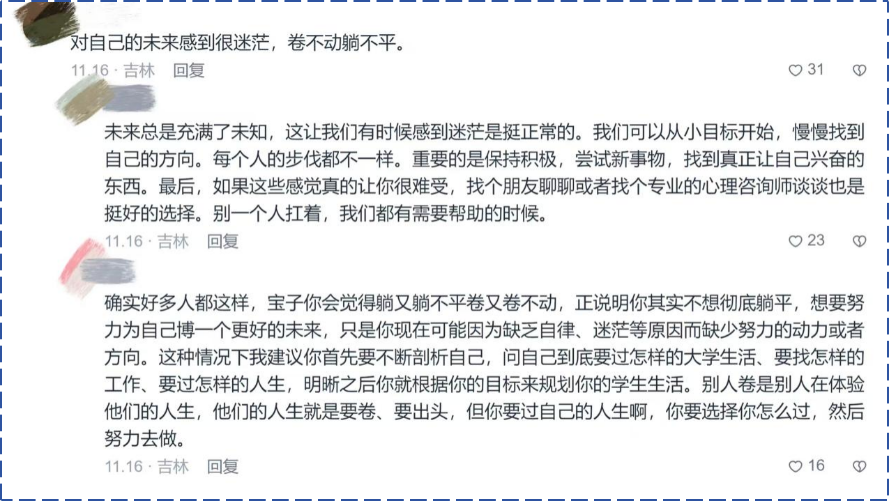 此次活动为同学们提供了倾诉心声、勇敢地表达内心困惑与不安的窗口,引导同学们主动释放心理压力,同时,通过经验分享使同学们获得了朋辈的暖心支持,在帮助他人解决问题的同时也获得了自我的成长,在忙碌的学业生活中找到属于自己的心灵慰藉。
