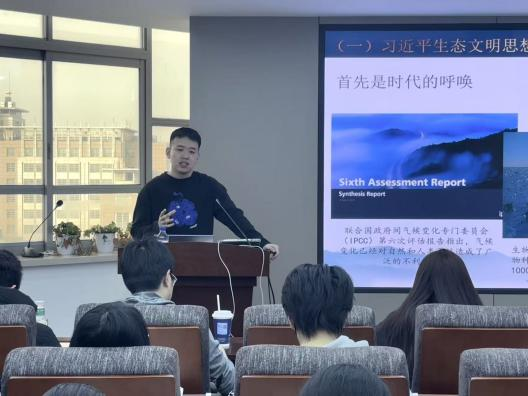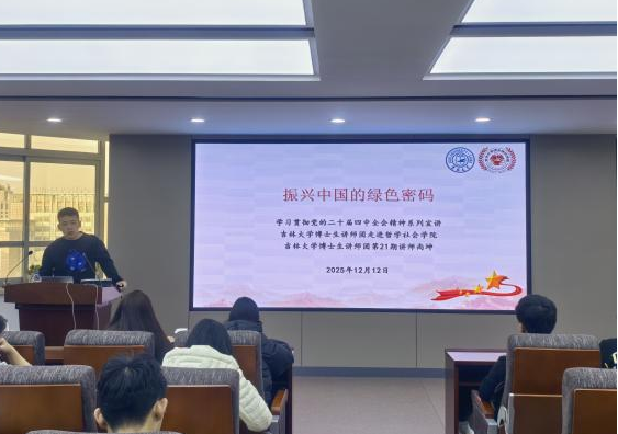 于12月12日在东荣大厦904会议室举办了以“振兴中国的绿色密码”为主题的宣讲活动。本次活动由学院辅导员、博士研究生第一党支部书记于洋老师主持,特邀吉林大学博士生讲师团第21期讲师、2024级社会学专业博士研究生尚坤担任主讲。