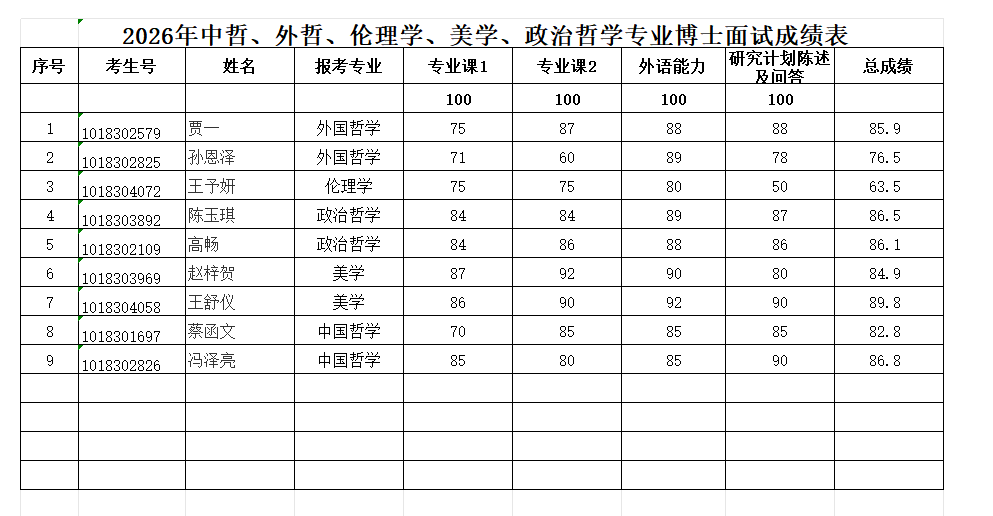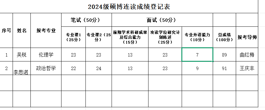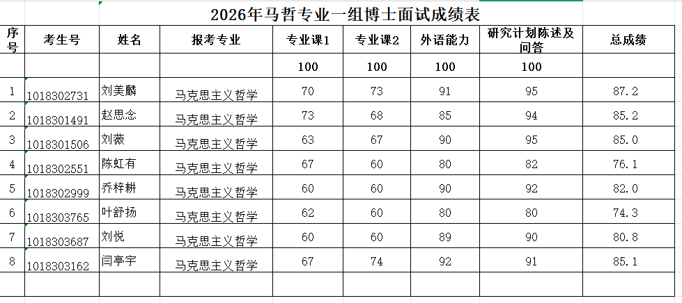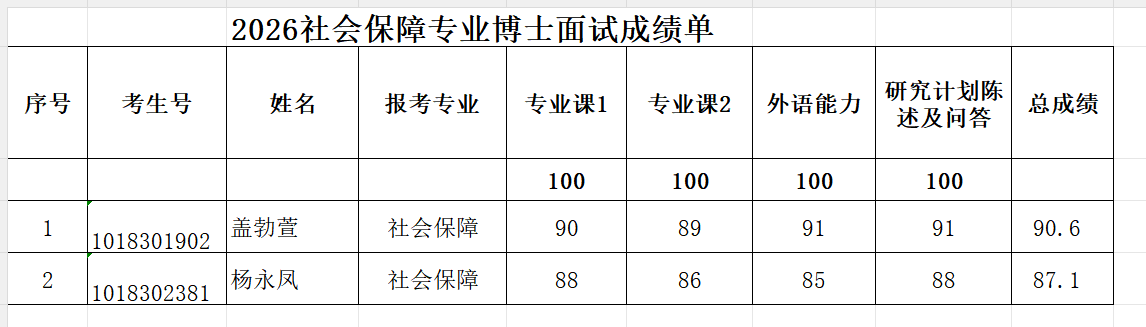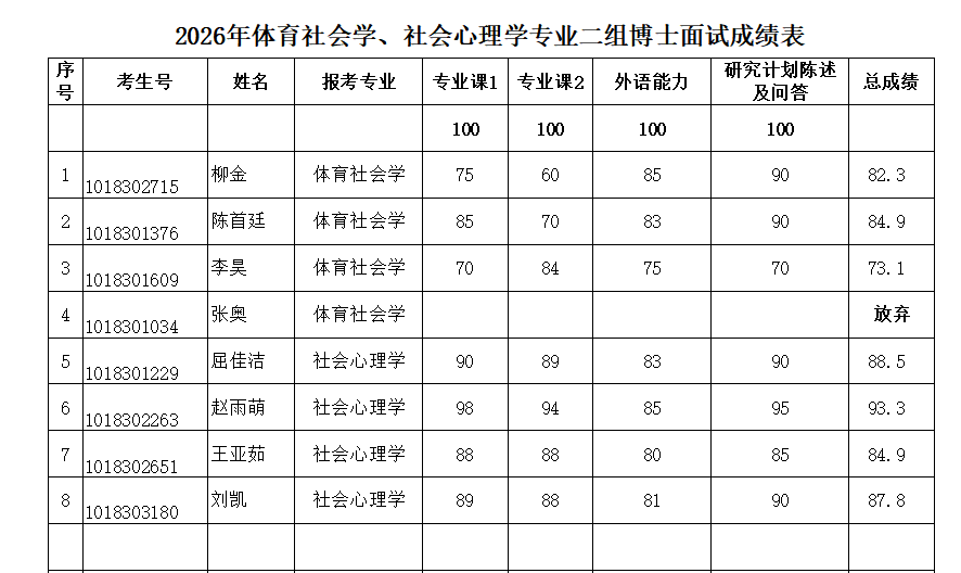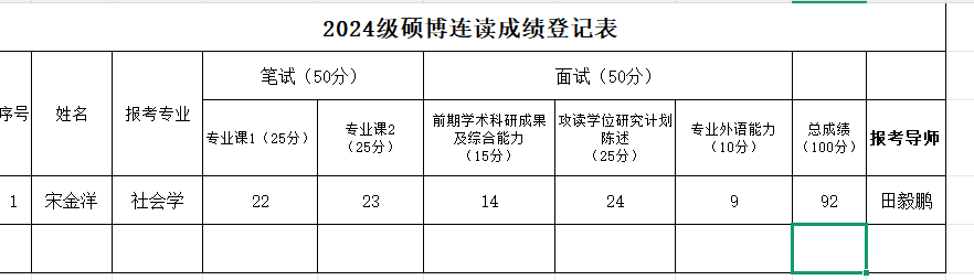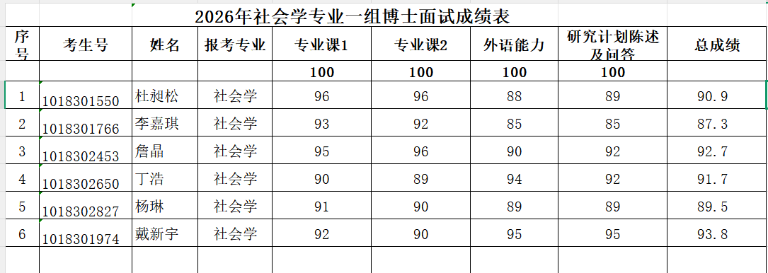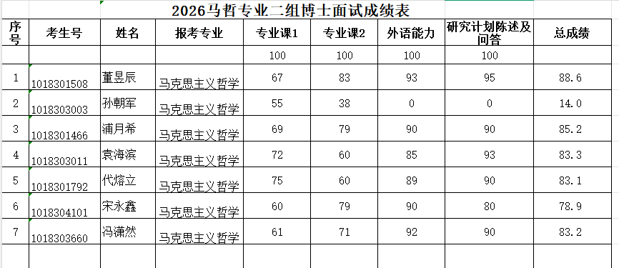 2026年硕博连读及博士申请考核复试成绩参见图片