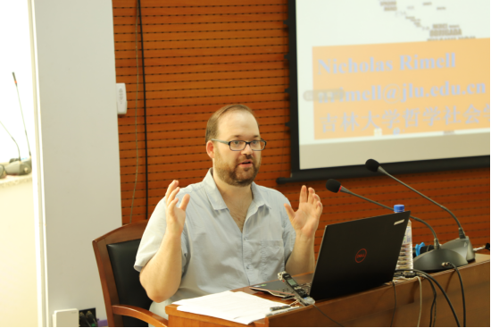 讲师Nicholas Kirk Rimell博士在吉林大学中心校区东荣大厦A904室,为吉林大学2021年“美道慎行”哲学夏令营的营员做了以Persistently Thinking Animals为题的英文学术报告。此英文学术报告由黄原博士主持。