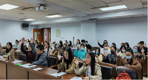 学生代表大会选举监票员、计票员(草案)》,大会审查并举手表决通过,确定辅导员于洋老师为监票人,梁镇玺为计票人。之后各候选人依次向大会作竞选报告,经与会研究生代表无记名投票,研究生辅导员于洋老师宣布最终的选举结果:2022届重庆时时彩