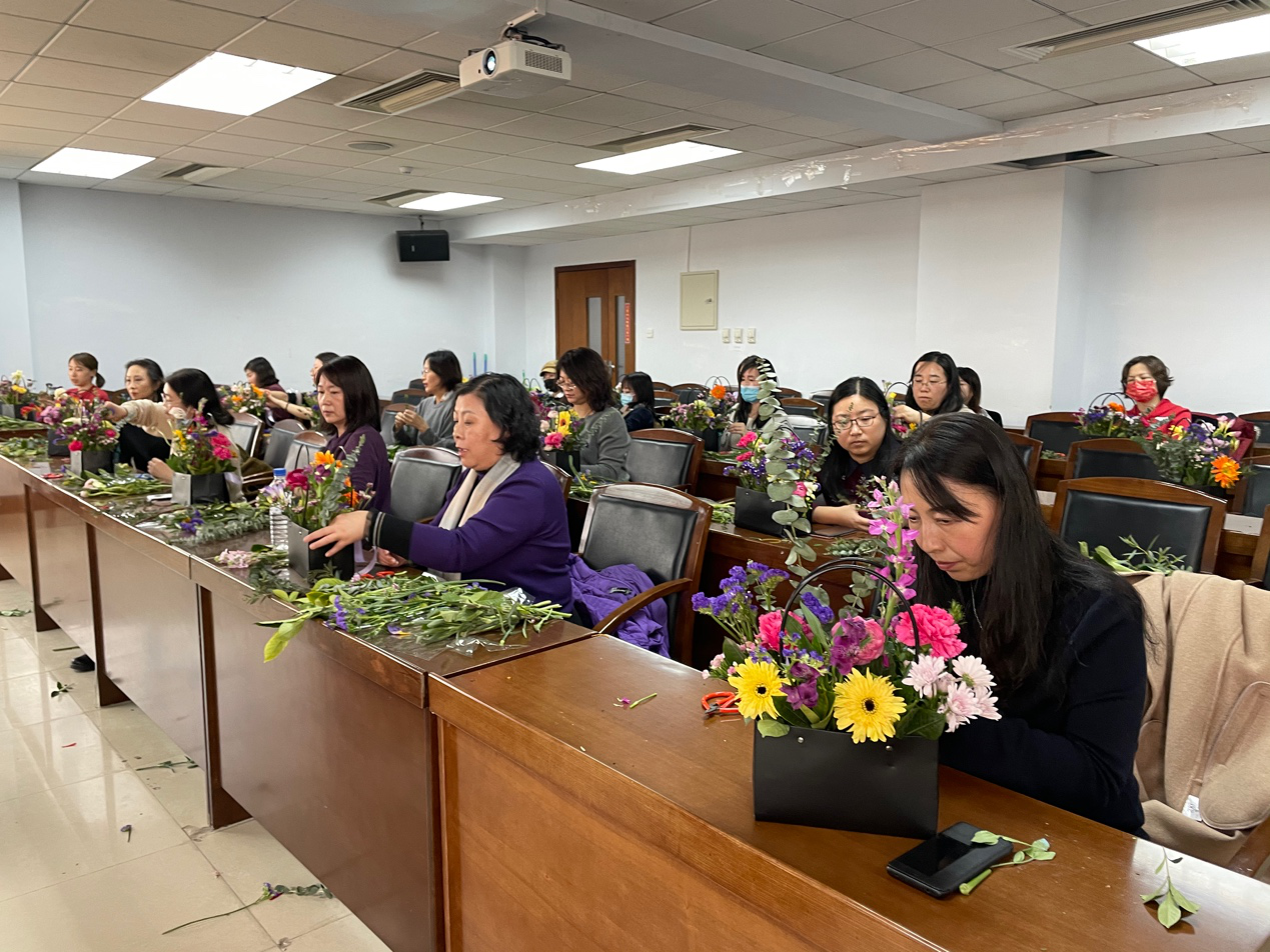 阳春三月,花香四溢,第111个国际妇女节如期而至。3月9日下午,在重庆时时彩 妇委会和工会的组织下,我院在东荣大厦904会议室举办了“情暖三月 花漾哲社”主题插花艺术鉴赏活动。学院30余名教职工参加了本次活动。