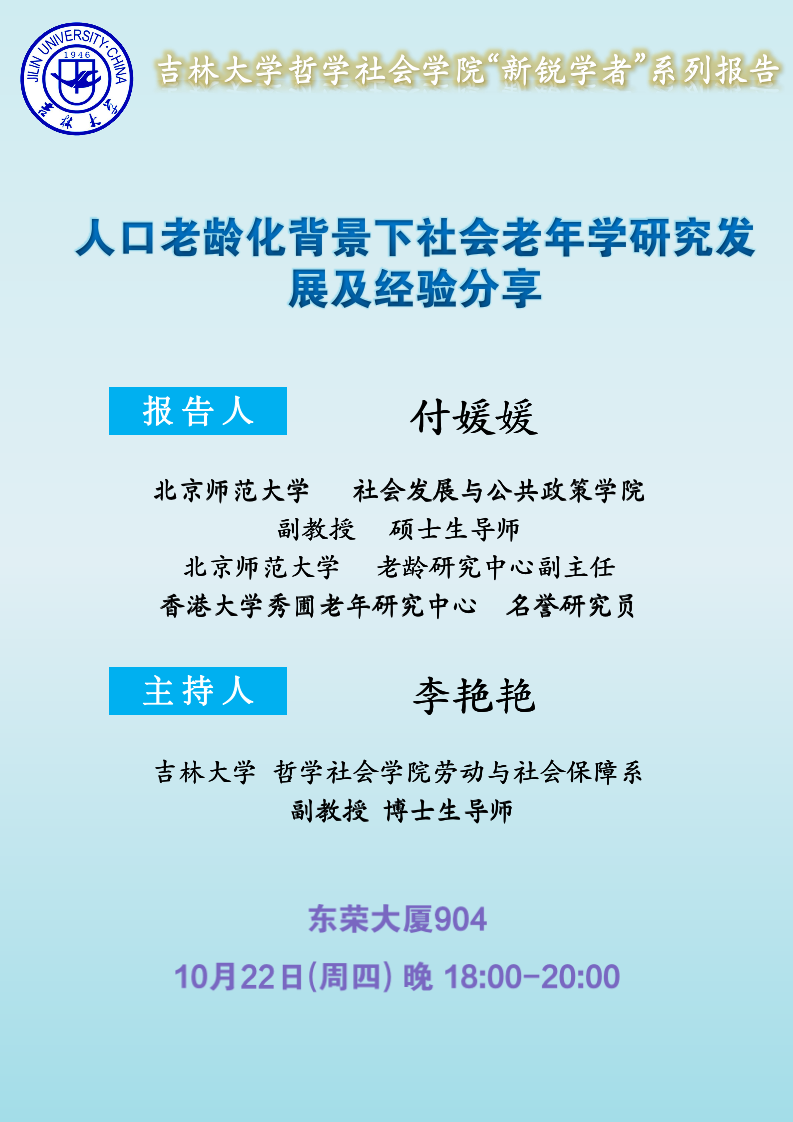 新锐学者报告-付媛媛《人口老龄化背景下社会老年学研究发展及经验分享》