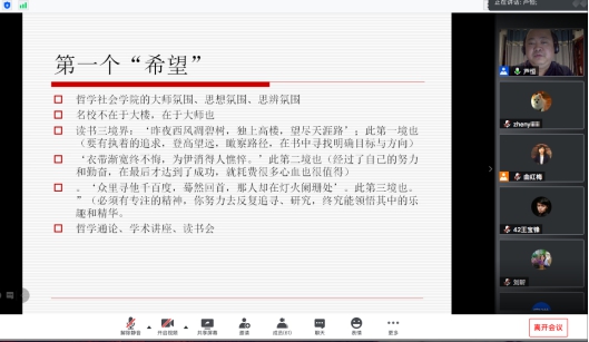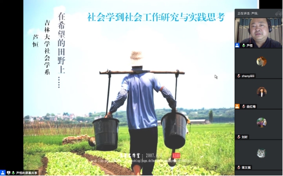 “大师氛围”的影响。在校期间学术名著的研习、名家讲座的聆听、对学院历史传统的关注与挖掘,都能令学子们深切感受到大师治学之严谨,思想之包容,从而使听者对人生的理想与目标产生新思考;第二层“希望”来源于吉林大学向学子们提供的广阔学术交流平台,针对不同学习阶段学子均提供众多科研参与机会,既是对学生学术能力的锻炼,更为跨学科合作提供了契机;“希望”的第三层涵义则落在专业领域,芦恒教授结合其医务社会工作团队对吉大一院肿瘤患者的实务介入经验,以及对长春市某棚户区治理中社区抗逆力研究为例,向与会师生介绍了社会工作专业中的“优势视角”理论,强调研究视角由“问题”向“优势”的转换,将有助于发现社会进步希望的内生动力。