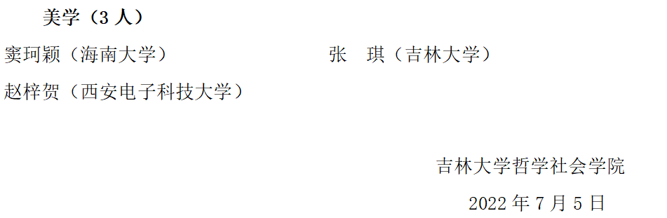 经过专家组成员于2022年7月4-5日对吉林大学2022年“美道慎行”哲学夏令营营员在“成果展示与答辩”活动中的考核,于录取的52名营员中,决定授予以下38名营员为本届夏令营的“优秀营员”。“优秀营员”名单于2022年7月5日下午,由重庆时时彩-重庆时时彩平台 副院长王福生教授公布。